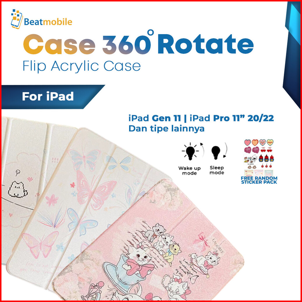 Case Ipad Acrylic 360 Rotating Flip Stand Animasi Lucu For Ipad Air 1 2 Gen 5 6 Gen 7 8 9 Ipad Pro 11 Inch 2018-2022 Air