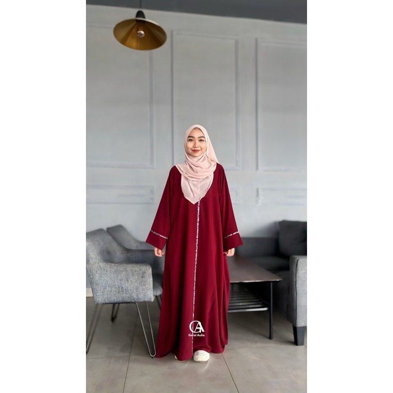 Abaya Turkey Terbaru Mahira Payet Polos Lembut Wolfis Gamis Wanita Terbaru 2026 Dengan Resleting Depan