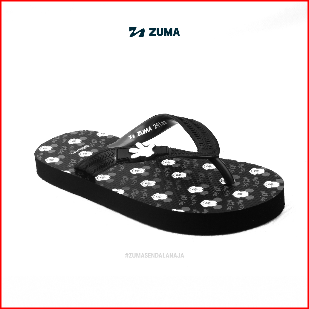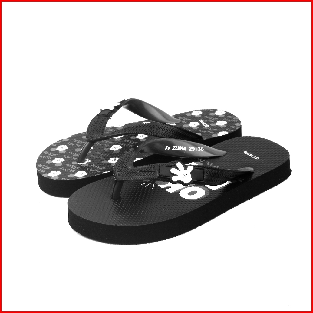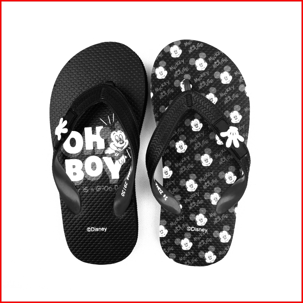 Zuma Kids Boys X Disney Mickey 1 Black Sandal Jepit Anak Laki-laki Karet Karakter Hitam