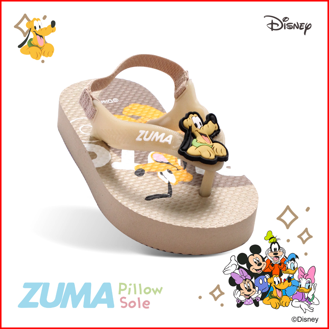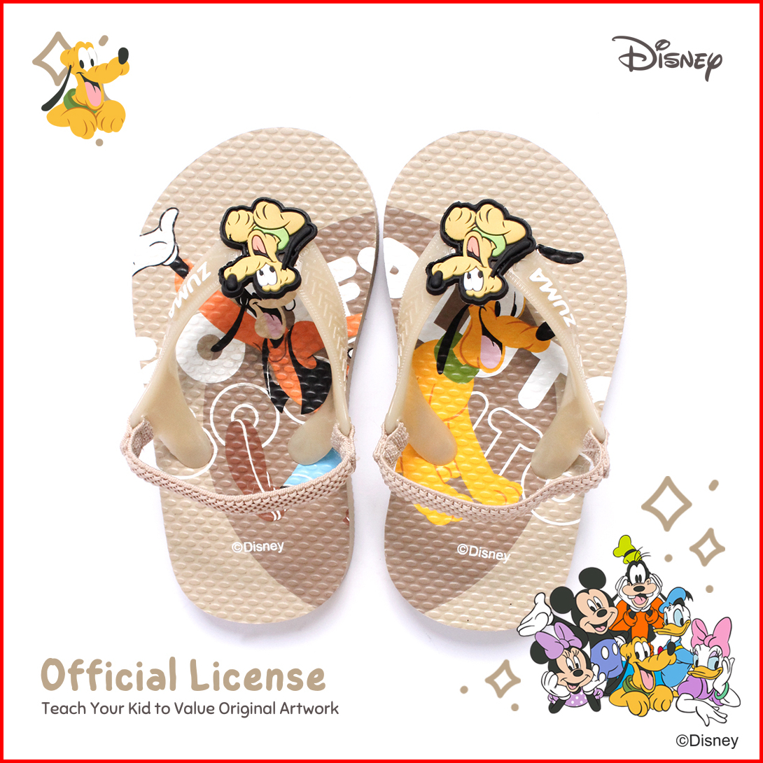 Zuma Baby X Mickey Friends Brown Sandal Jepit Bayi Karet Tali Belakang Coklat