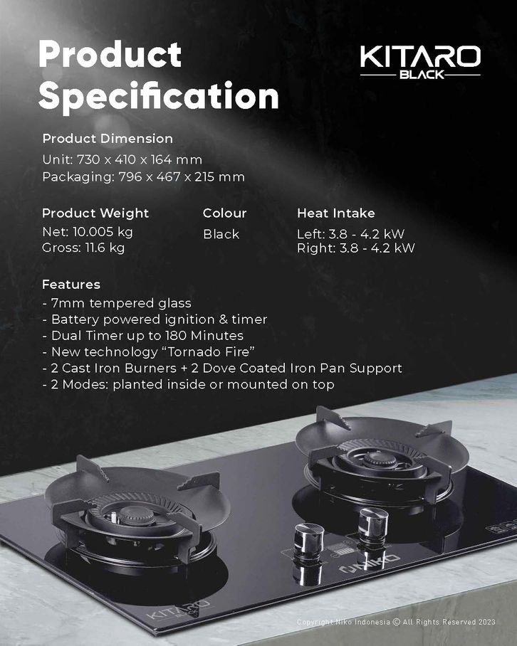 Kompor Tanam Niko Kitaro Black 2T Bergaransi Resmi