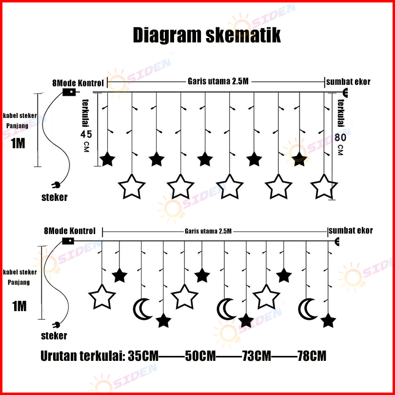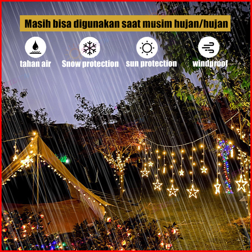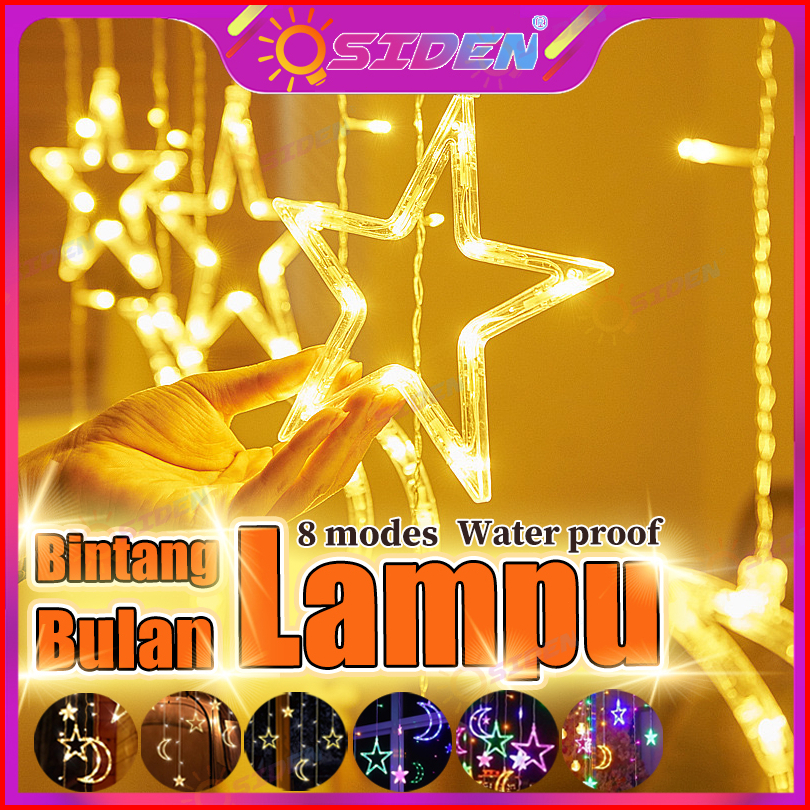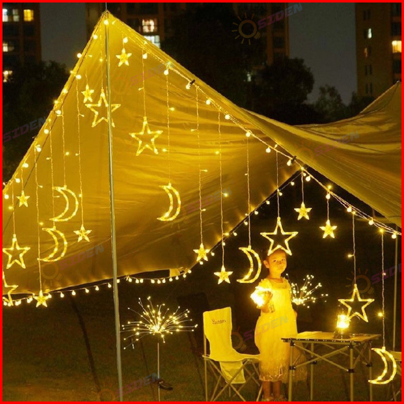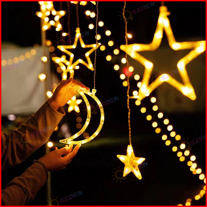 Osiden Lampu Hias 4m Lampu Ramadhan Tahan Air Lampu Tirai Bintang Bulan Lampu Natal Lampu Hias Kamar