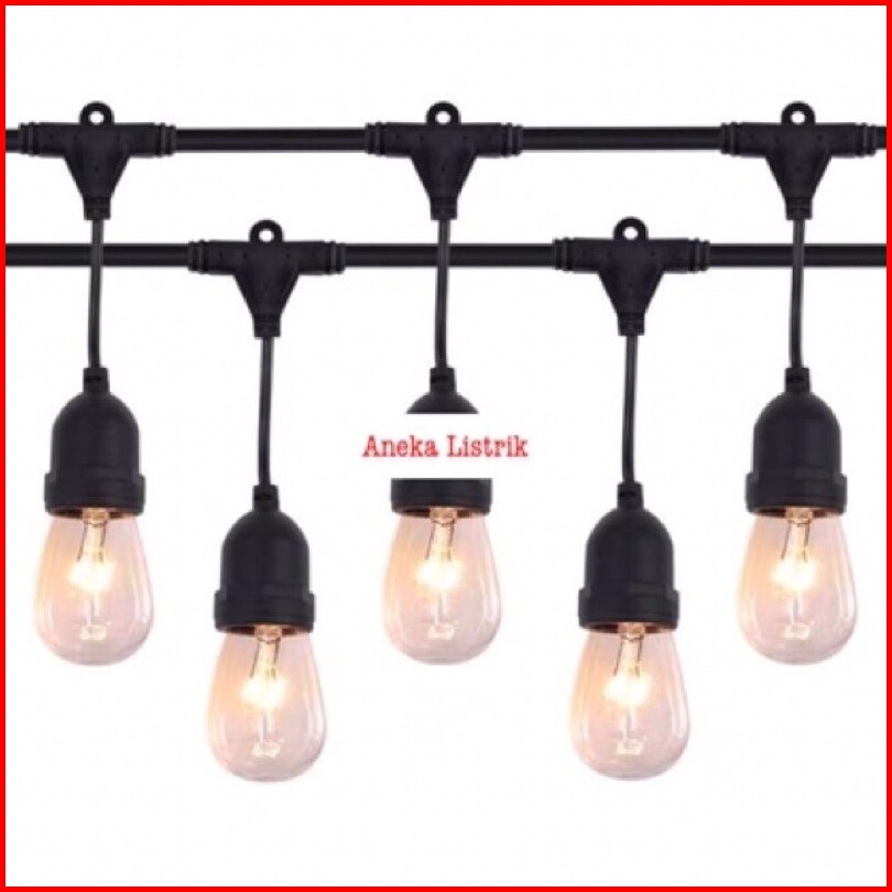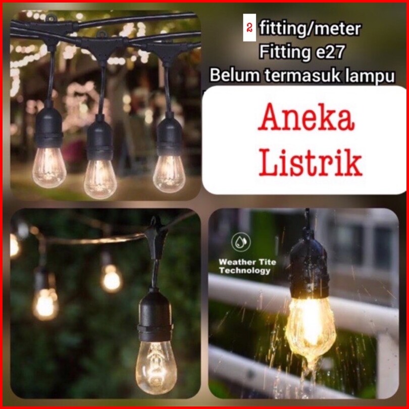 Kabel Fitting Lampu Gantung E27 5 Meter 10 Fitting Outdoor Taman Waterproof