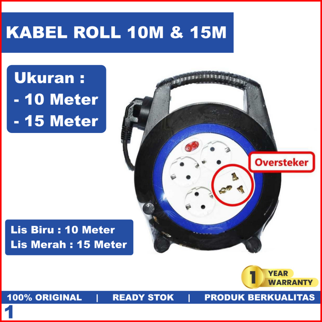 Kabel Roll 10 Meter 10 M 10m 15 Meter 15 M 15m 4 Lubang Arde Kuningan Oversteker Visicom Sni