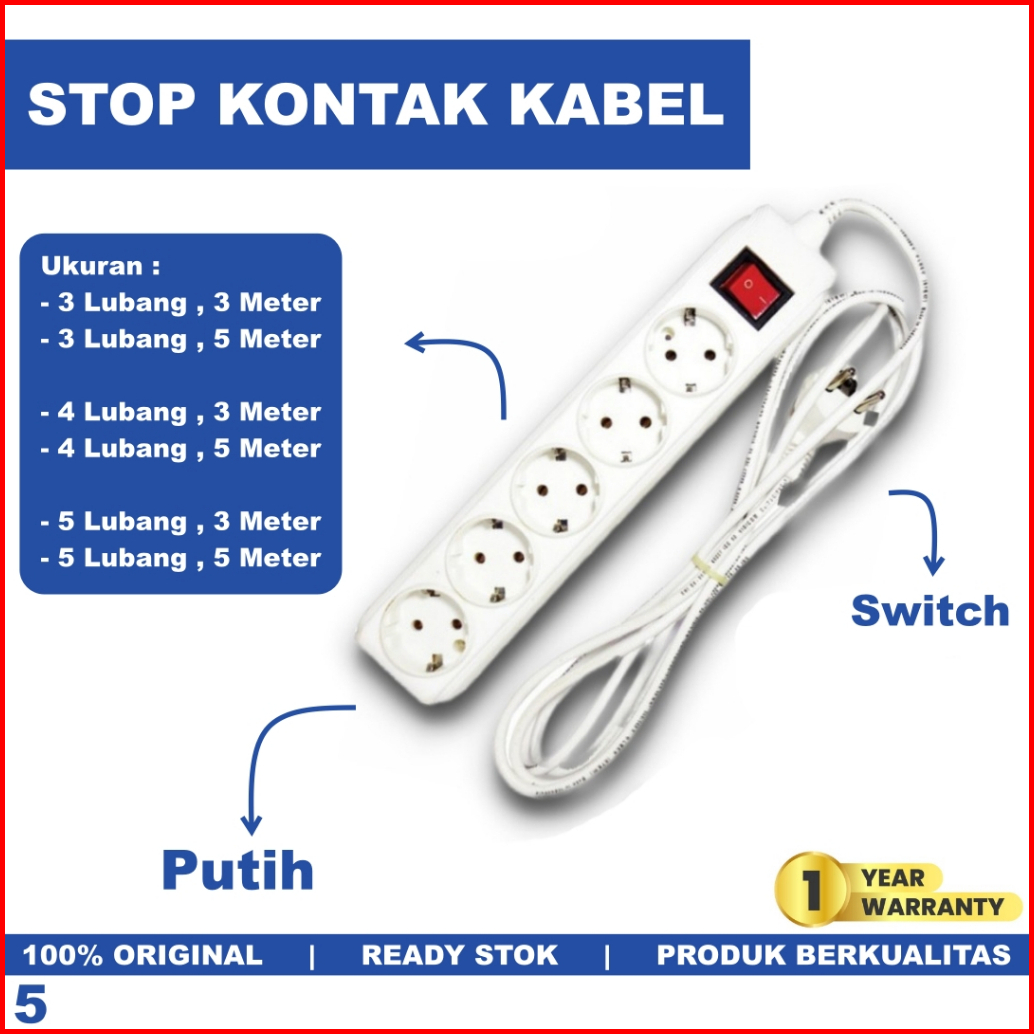 Stop Kontak Kabel 5 Meter 3 Meter Stop Kontak Kabel Panjang 3 Lubang 4 Lubang 5 Lubang Visicom
