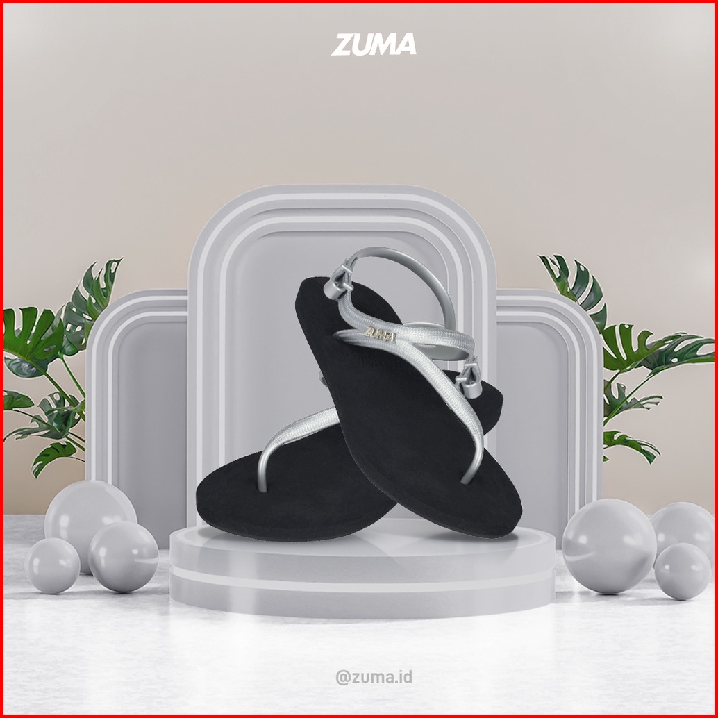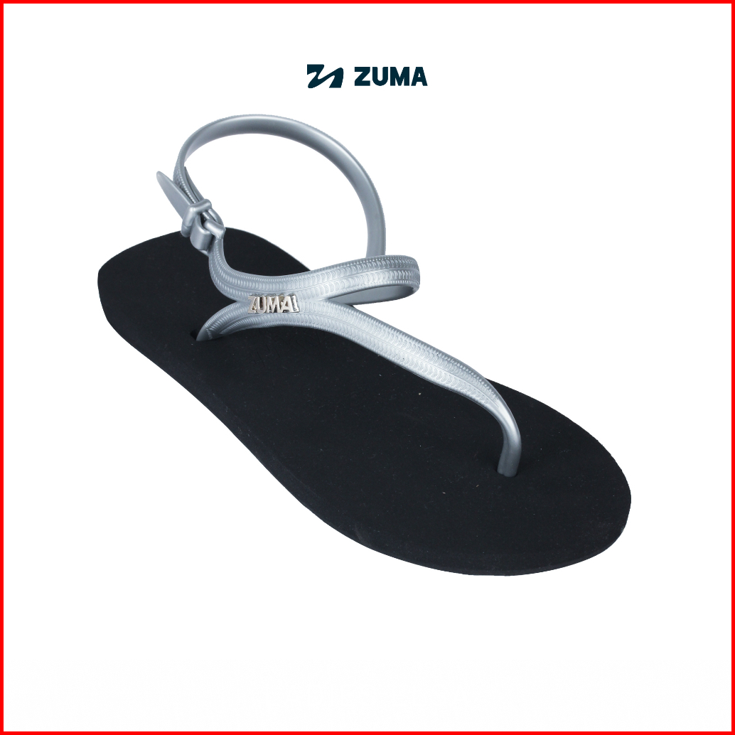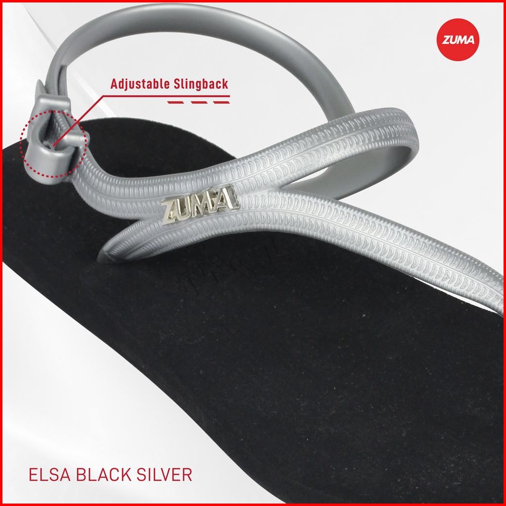 Zuma Women Elsa 8 Black Silver Sandal Tali Belakang Sling Back Karet Wanita Hitam Abu-abu