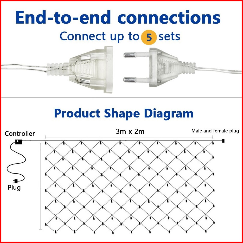 Lampu Led Jaring 3m X 2m Lampu Tirai Natal Jala Led Net Light Lampu Jaring Outdoor Waterproof Lampu Hias 17 Agustus Lamp