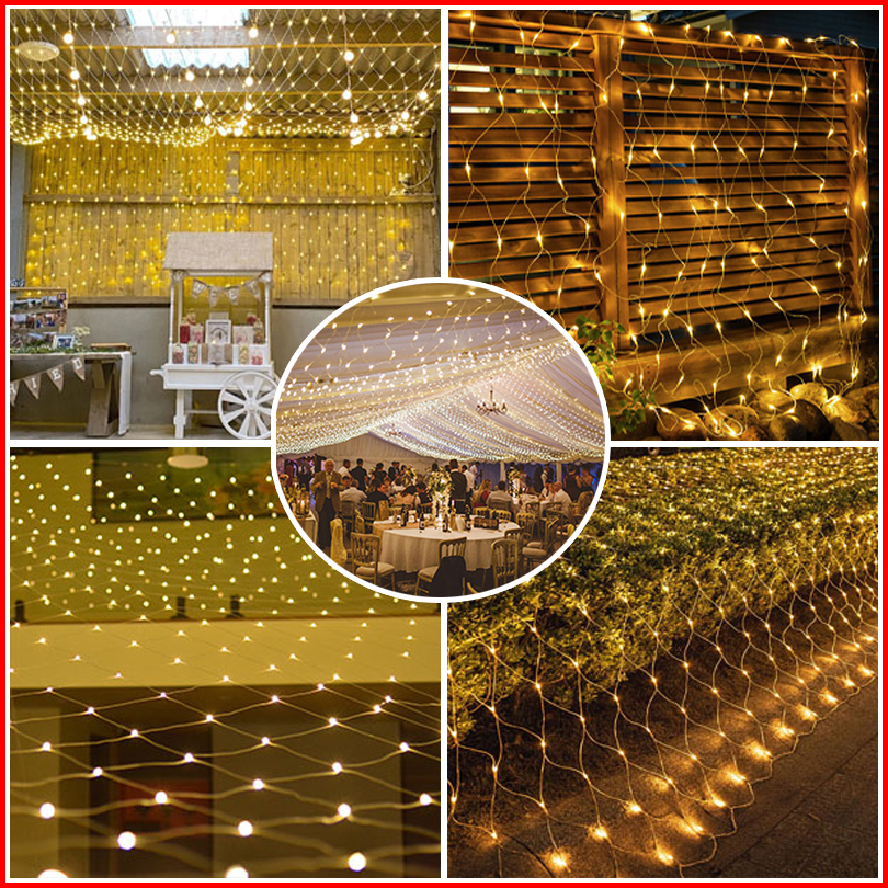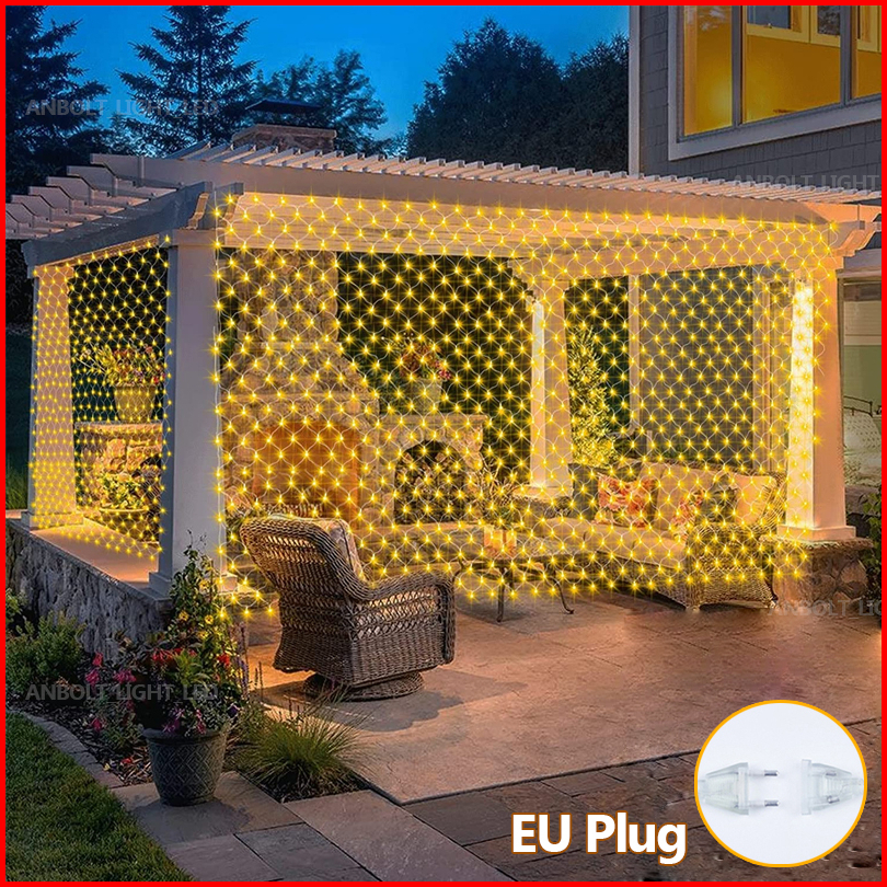 3mx2m Lampu Jala Tirai Panjang Waterproof Lampu Led Hias Taman Lampu Ramadhan Net With Eu Plug Lampu Kelap Kelip Dekoras