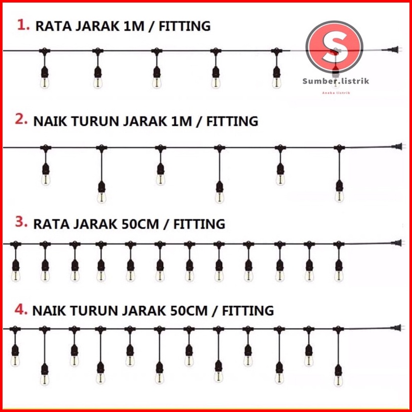 Kabel Fiting Lampu Cafe Gantung 10m 20fitting 10m 10fitting Dekorasi Outdoor Fitting Super Murah