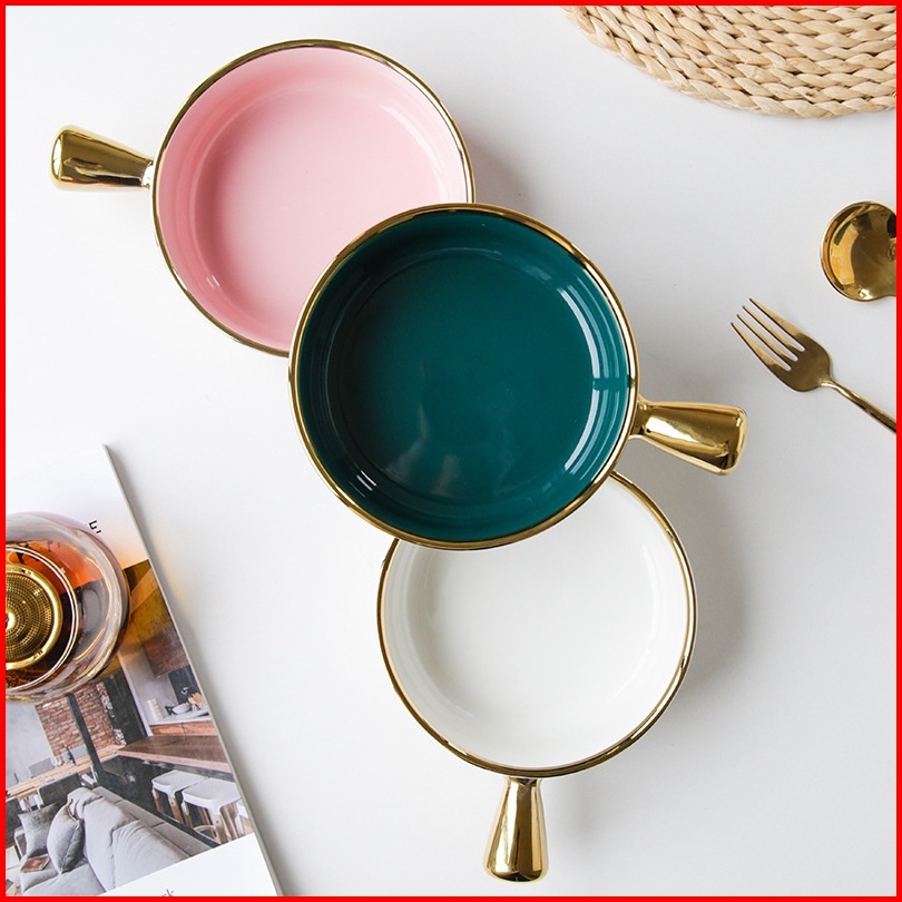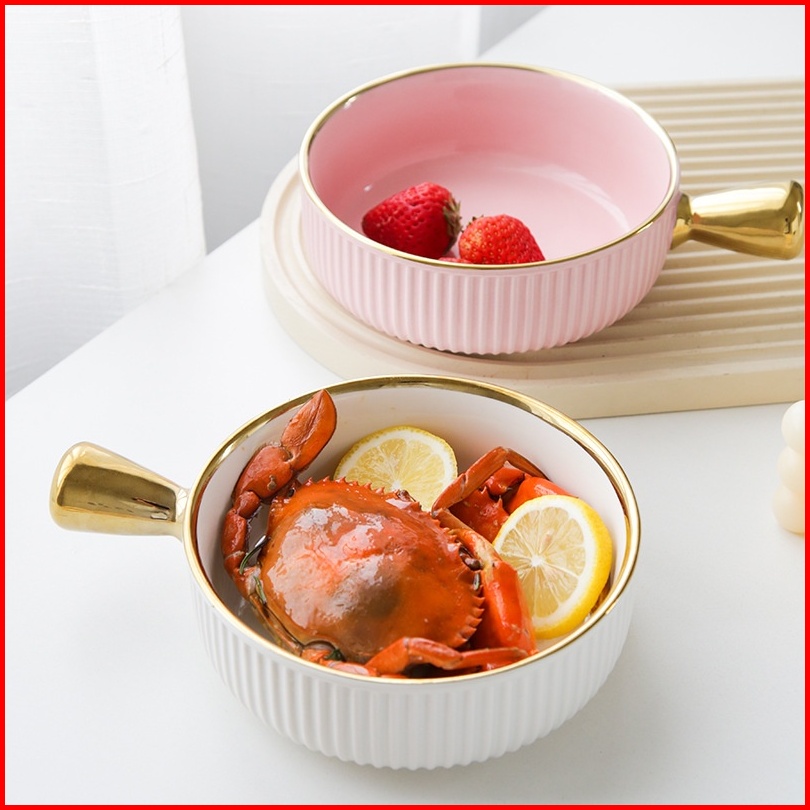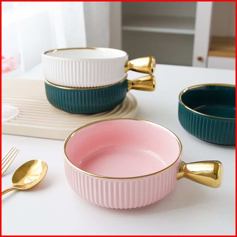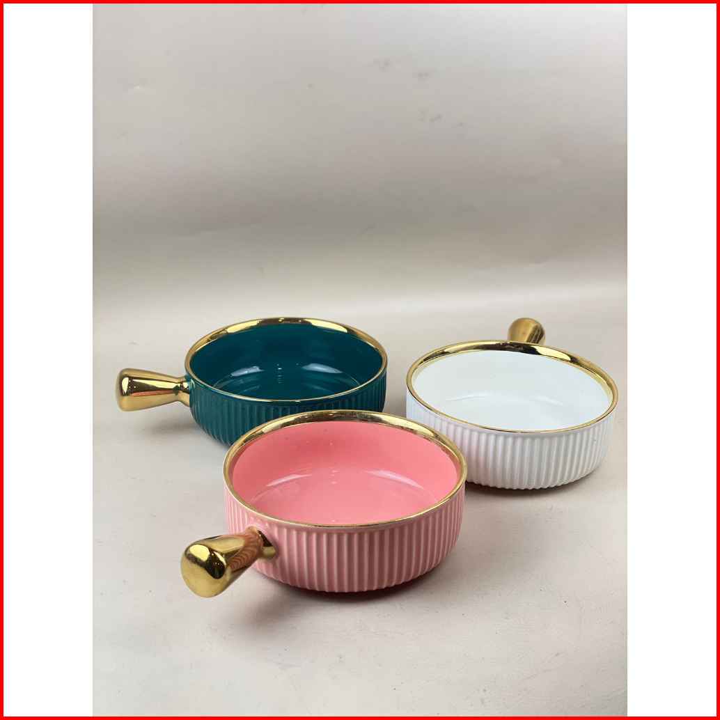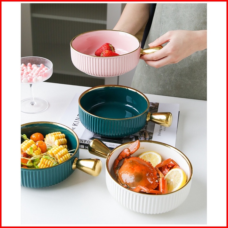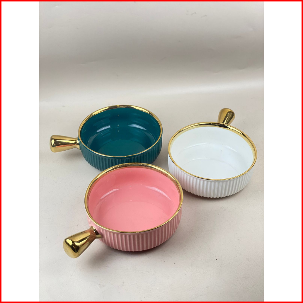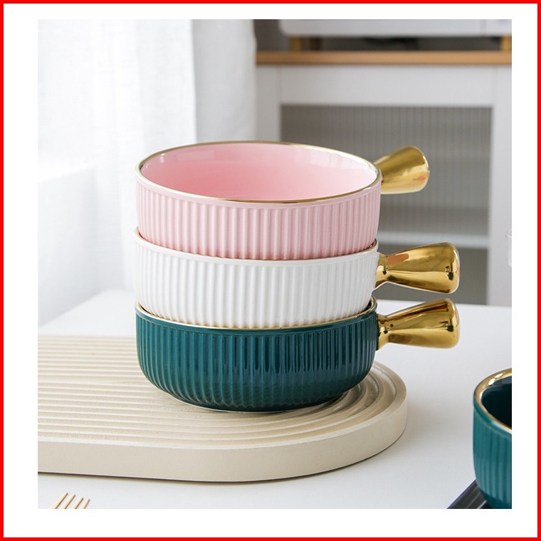 Ashome Mangkok Gagang Keramik Motif Garis Pumpkin Dengan Gagang Warna Panci Gagang Keramik Piring Gagang Keramik List Ma