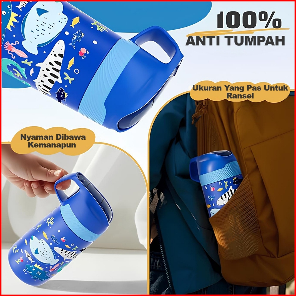 Fjbottle - Sr2104 Botol Minum Tumbler Anak 350ml Stainless Steel Bpa Free Sus 316 Dengan Sedotan Silicon Tebal Penggunaa