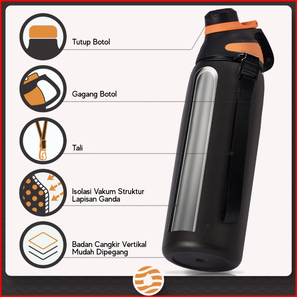 Fjbottle - Sr2106 Botol Portable Olahraga Stainless Steel 800ml Double Insulated Bottle Tahan Panas Dan Dingin Dengan Tu