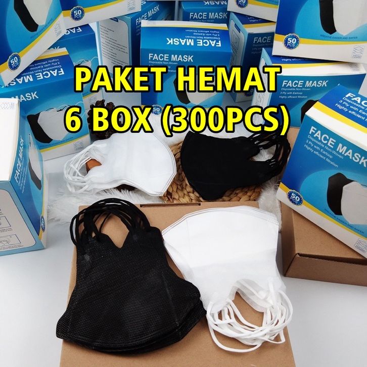 [PAKET 6 BOX] MASKER DUCKBILL FACEMASK 300 PCS 3PLY HITAM PUTIH