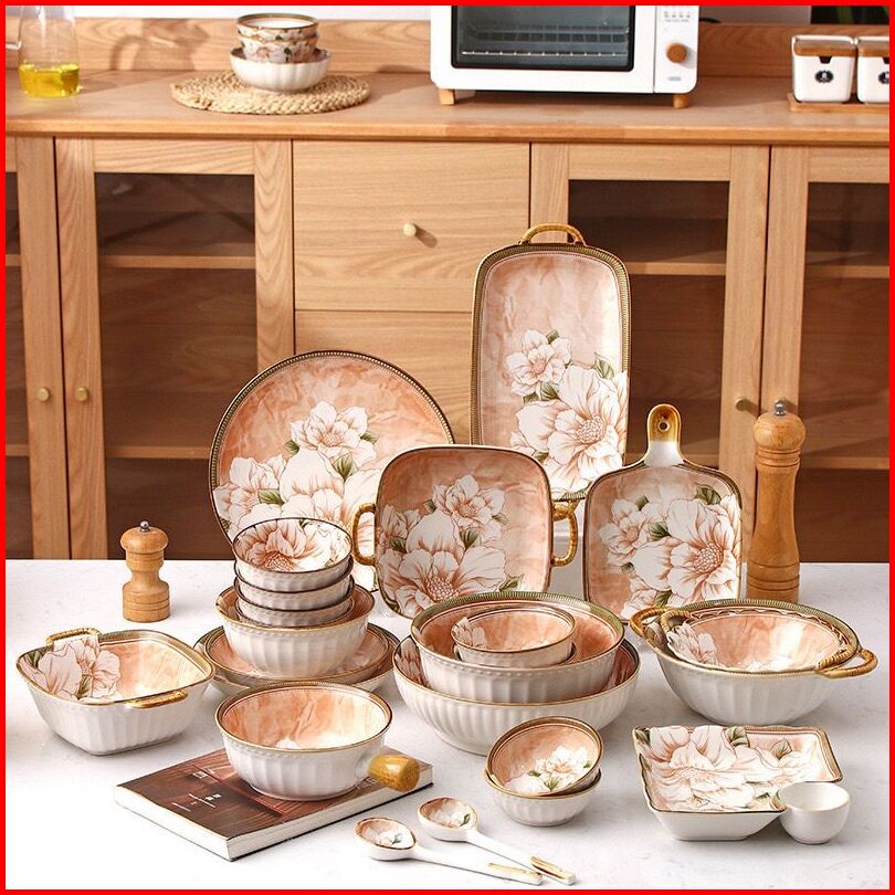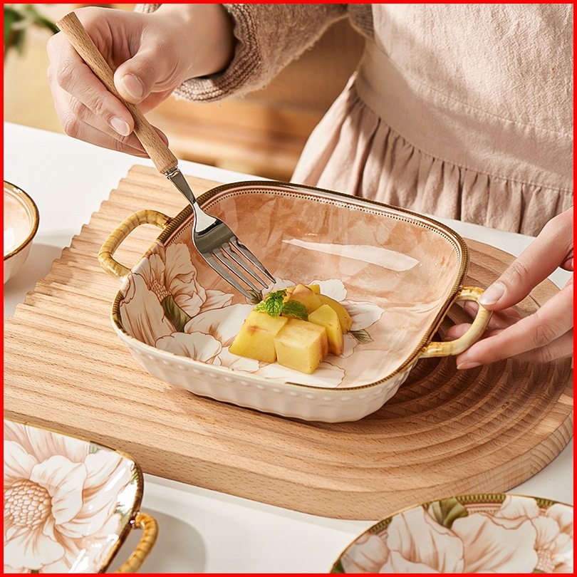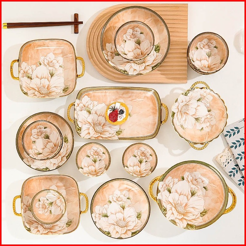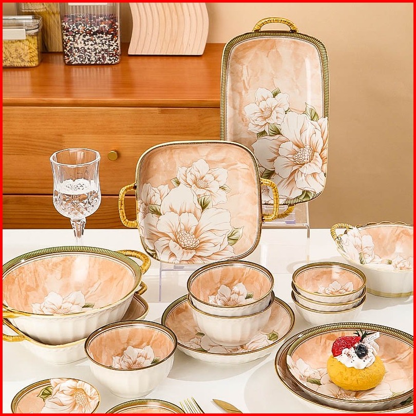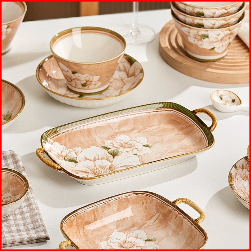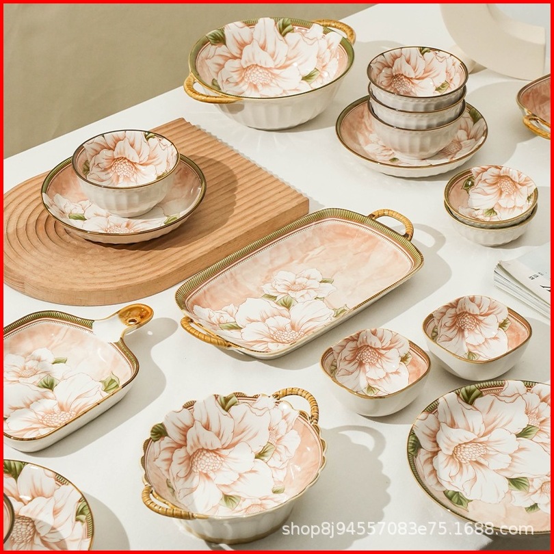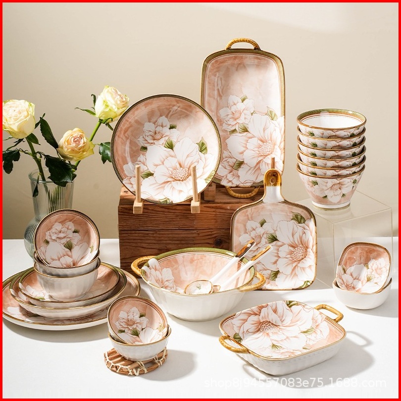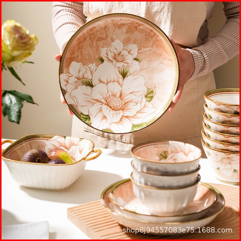 Ashome Piring Keramik Makan Motif Franc Series Soft Pink Bloom Piring Makan Jepang Piring Makan Motif Soft Pink Bloom Pi