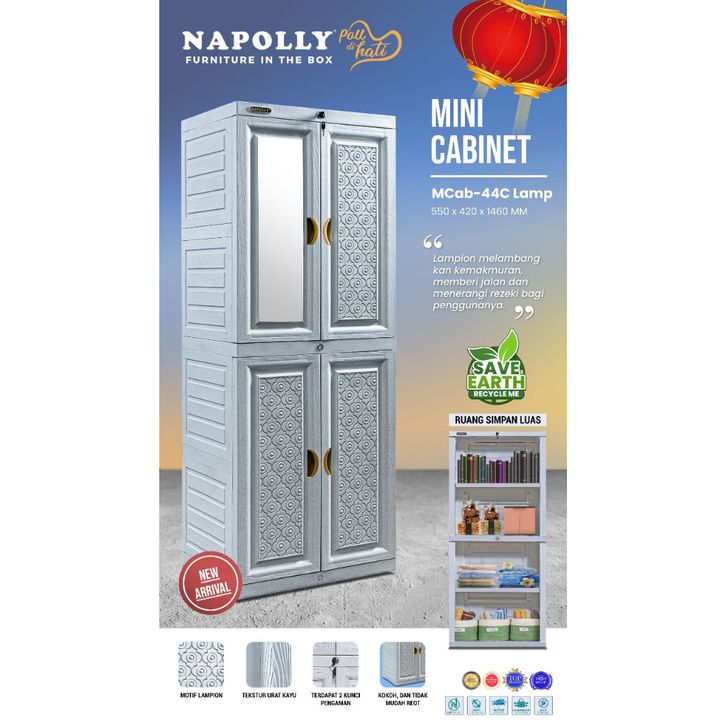 Lemari Pakaian Plastik Napolly Susun Minicab Cermin Kunci