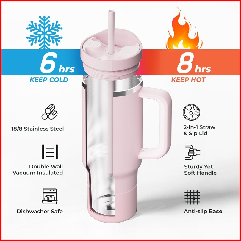Fjbottle - Sr2112 Botol Minum Tumbler Stainless Steel 1184ml Sus 304 Double Insulated Vaccum Dengan Sedotan