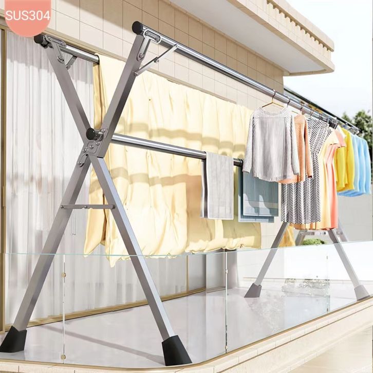 Jemuran Baju Lipat Stainless Steel Jemuran Pakaian Basah Tahan Karat Jemuran Pakaian Outdoor / Indoor