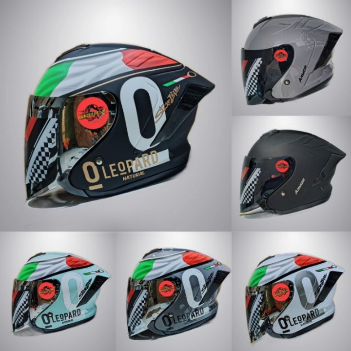 HELM JS ARMOR YAKUZA PAKET GANTENG BONUS SARUNG TANGAN MOTIF LEOPARD AQUAMARIN HELEM MOTOR PRIA DEWASA POLOS SNI TERBARU
