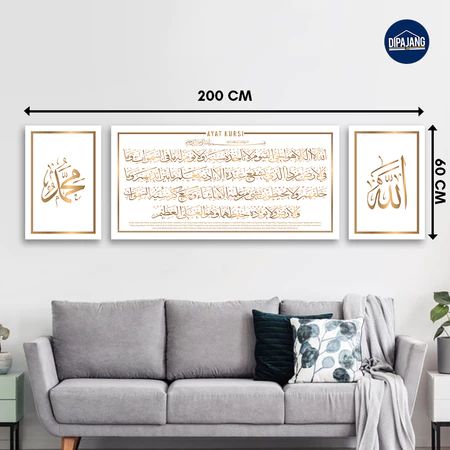 DipajangID Set Kaligrafi Hiasan Dinding Ayat Kursi Emas Gold Natural Monochrome 60x120 dan 40x60 cm - KS039 Pajangan