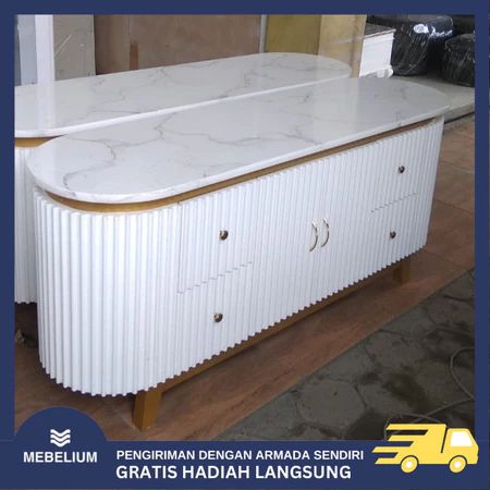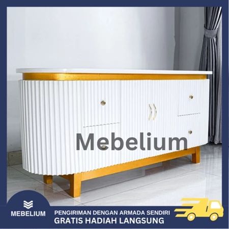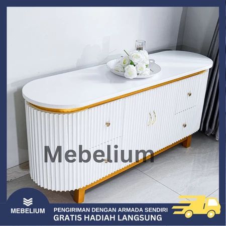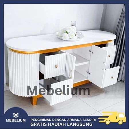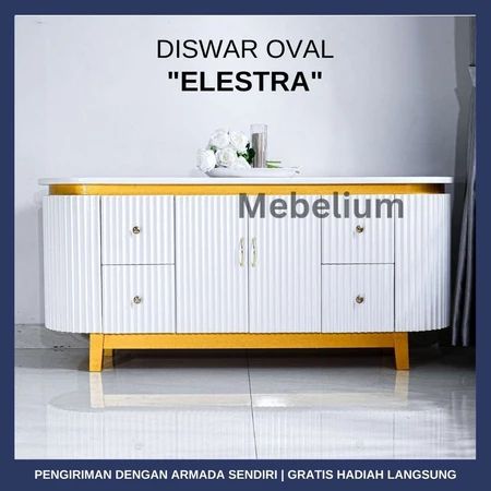[Custom Made] Bufet Oval Premium Elestra | Diswar Credenza Scandinavian Salur ern Kayu Bloktik | Meja TV Minimalis