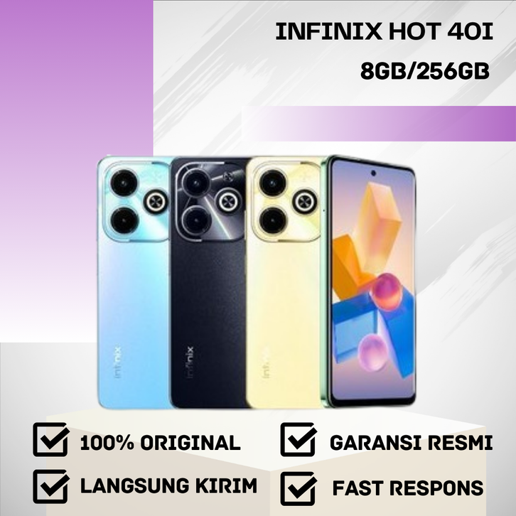 infinix hot 40i 8/256GB garansi resmi indonesia (Unisoc T606, 6.56" 90Hz display, 50MP AI+lens)