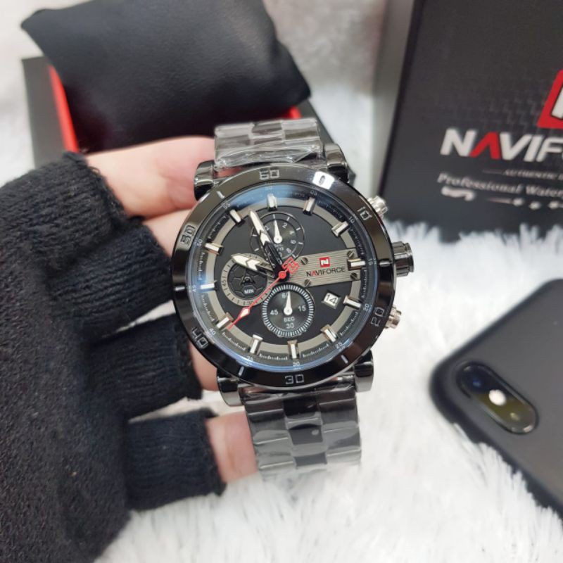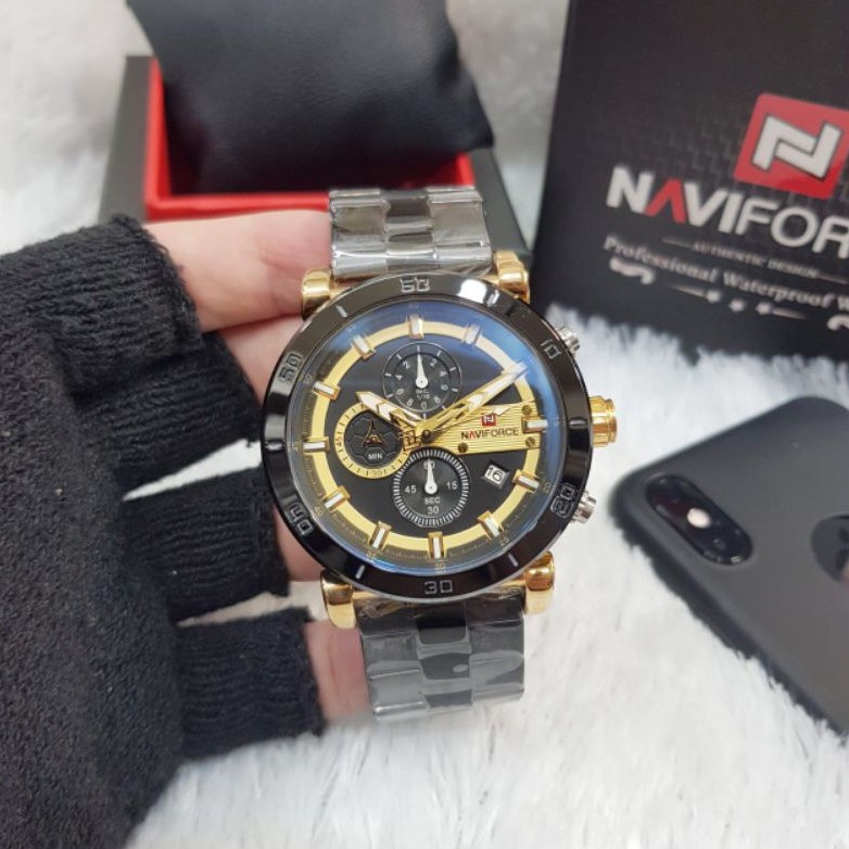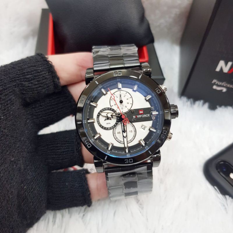 Jam Tangan Pria NAVIFORCE 9131 Original Chrono Aktif Rantai Stainless Steel Anti Air Luminous Garansi Resmi