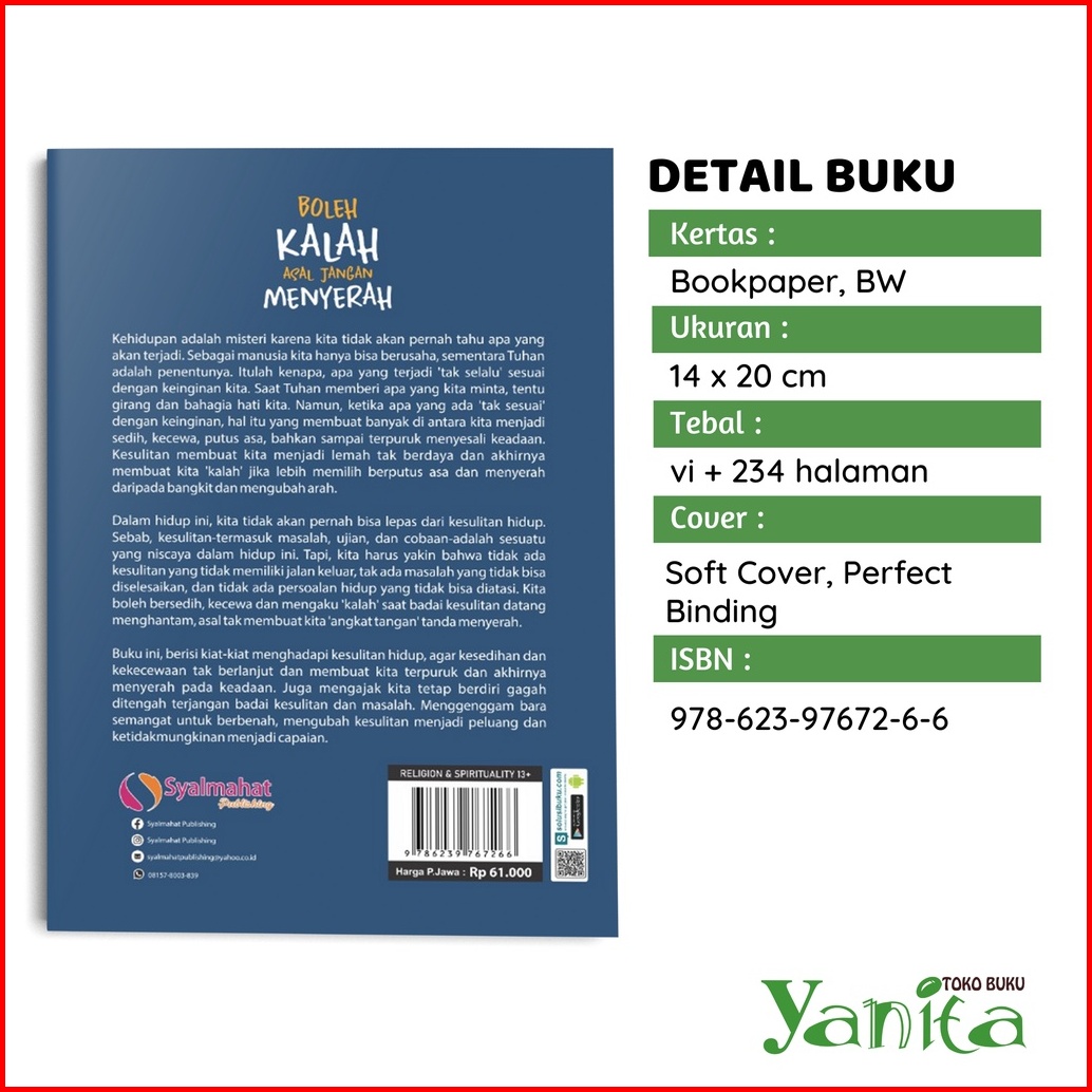 Syalmahat Publishing Buku Motivasi Islam Islami Boleh Kalah Asal Jangan Menyerah Untuk Muslim Dan Muslimah