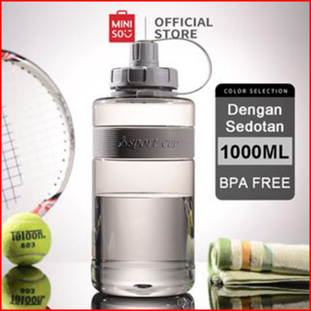 Miniso Tumbler Minum Botol Minum Plastik Aesthetic 1 Liter Botolminum Olahraga Kapasitas Besar Anak Laki Laki