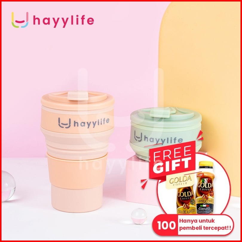 Hayylife Free 1pcs Coffee Foldable Cup Tumbler Lipat Silikon Cup Untuk Kopi Portable Collapsible 500 Ml Hl-aab753