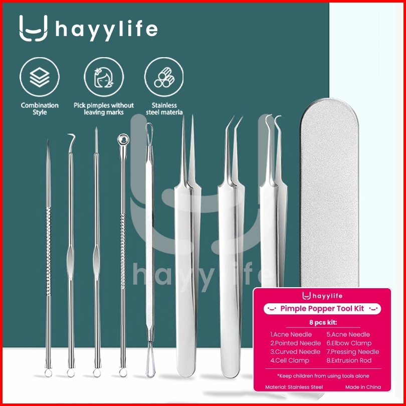 Hayylife Set Alat Pembersih Komedo Stainless Steel 8 Pcs Include Kotak Penyimpanan Hl-bcb913