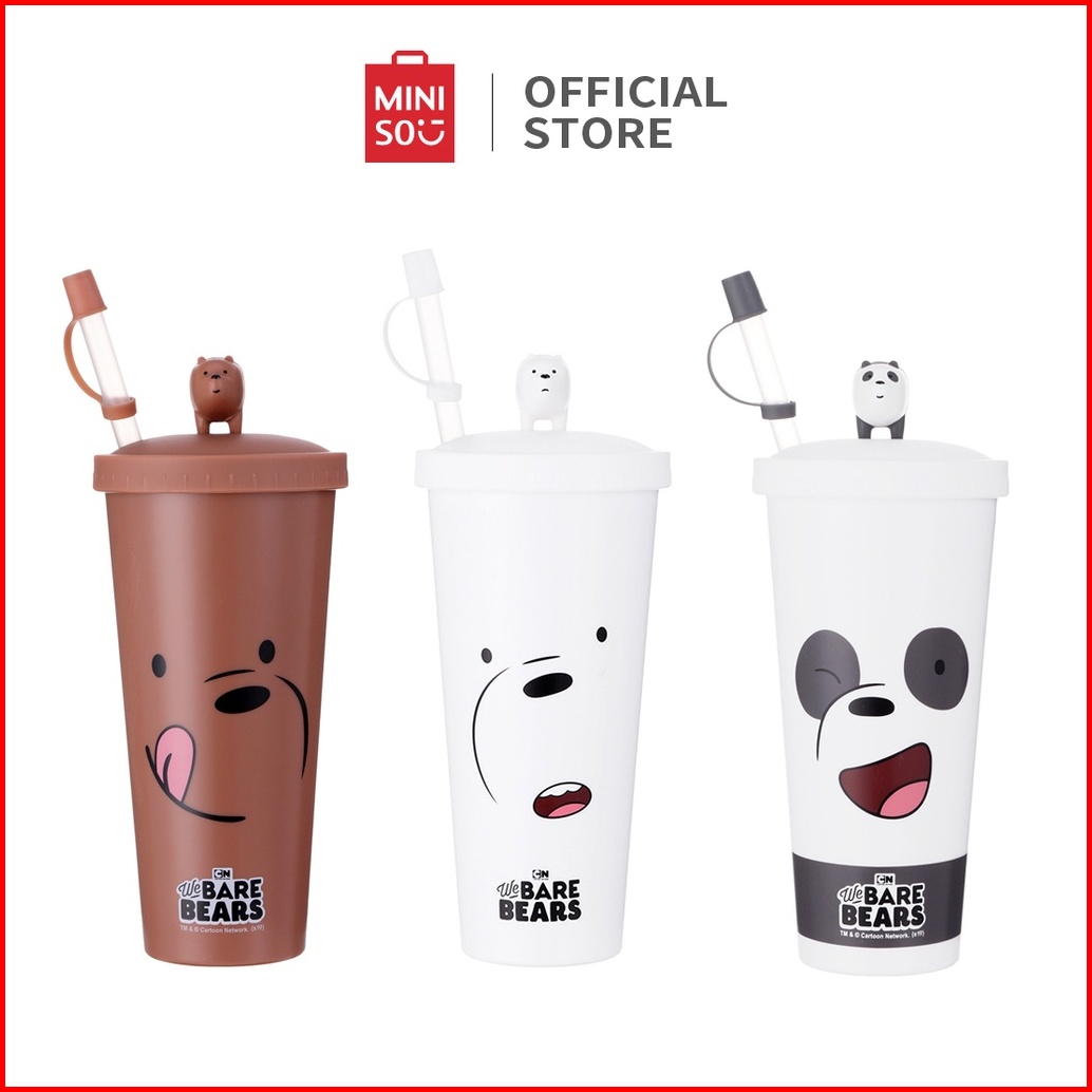 Miniso Botol Minum Sedotan Plastik We Bare Bear Tumbler Botol 640ml Water Bottle Plastic Straw Type B With Straw