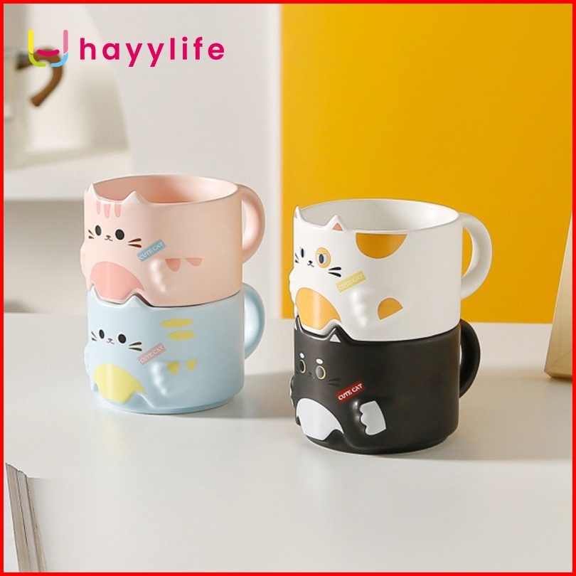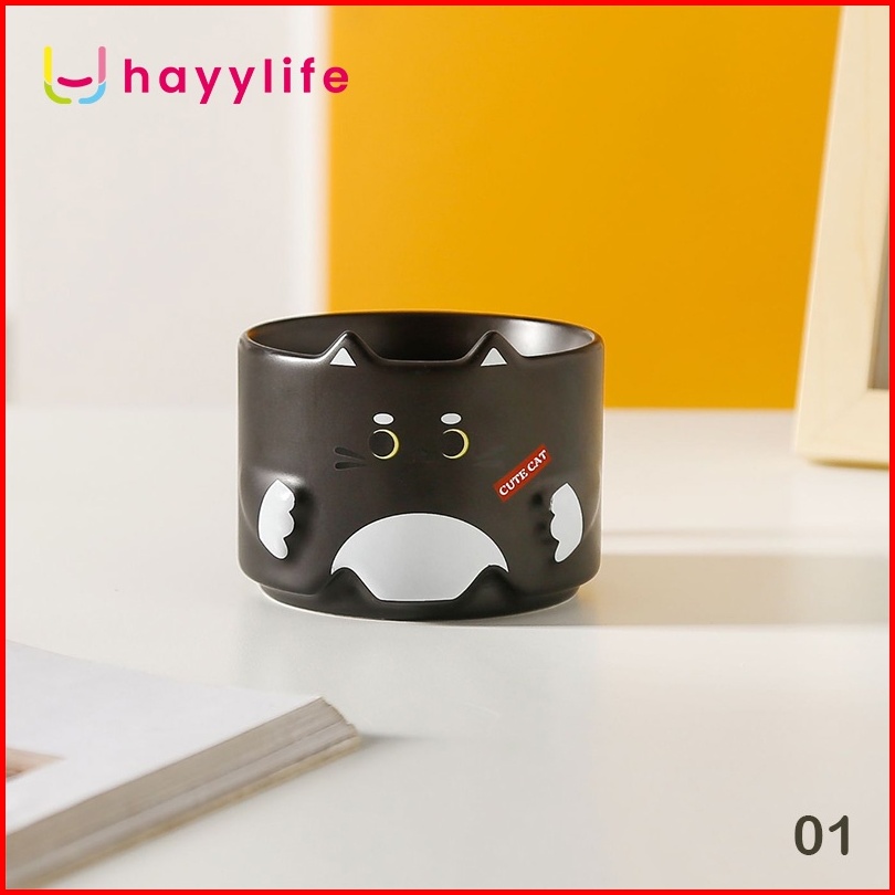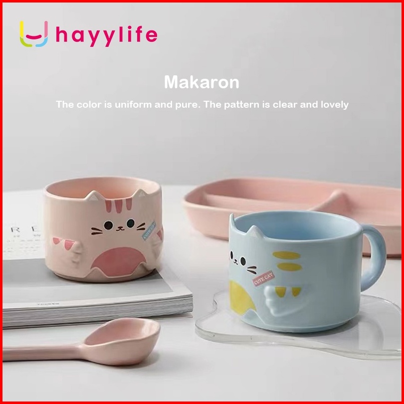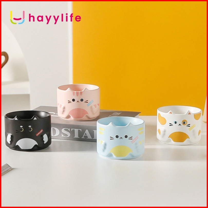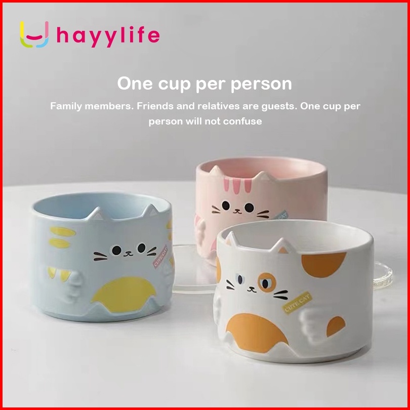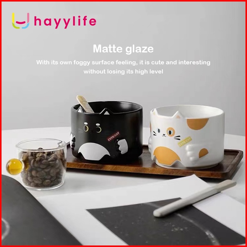 Hayylife Cangkir Keramik Karakter Kucing Lucu Kapasitas 300ml Hl-aab798