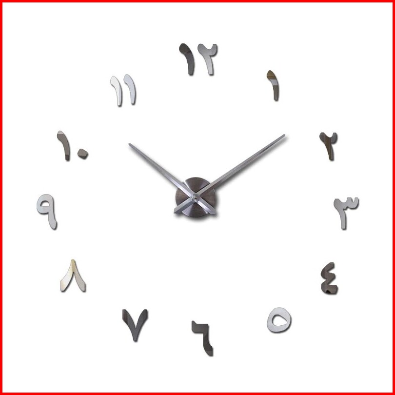 Jam Dinding Besar Diy Mewah Unik Model Angka 3d Arab Kaligrafi Jam Tembok Arabic Dekorasi Rumah Kamar Warna Hitam Silver