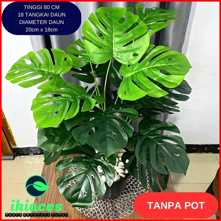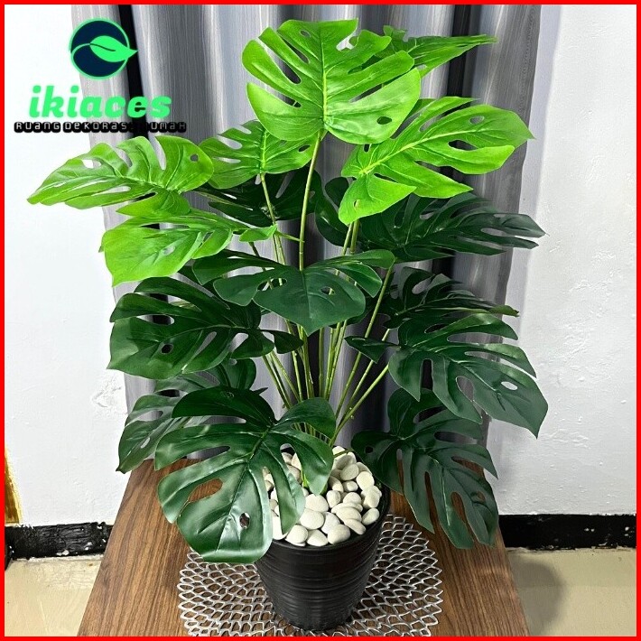 Daun Monstera Jumbo 18 Cabang Daun Monstera Artificial Pot Bunga Hias Murah Bunga Plastik Daun Palsu Dekorasi Tanaman Hi