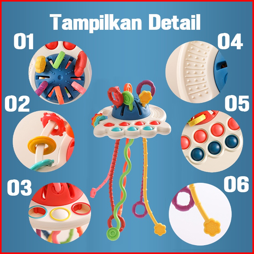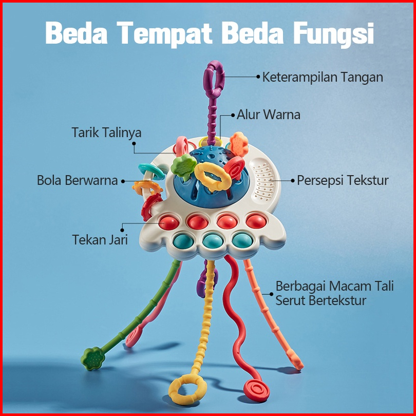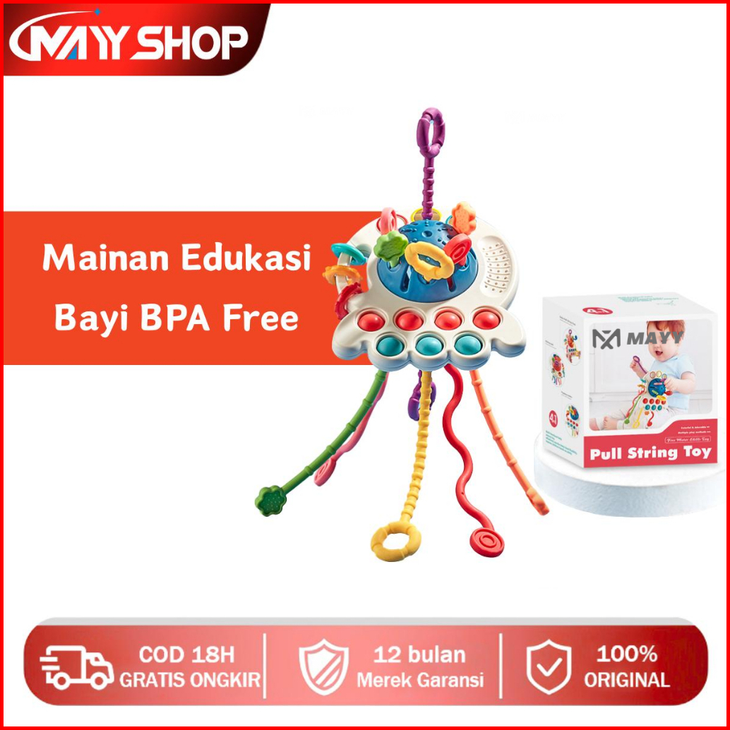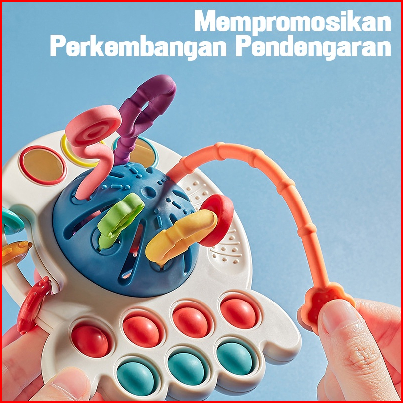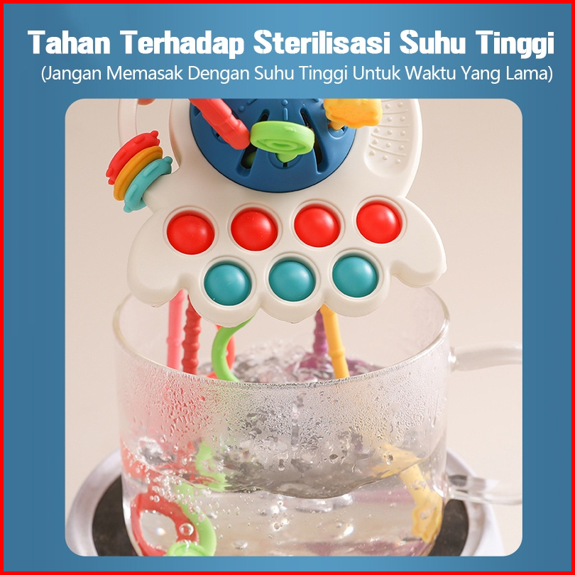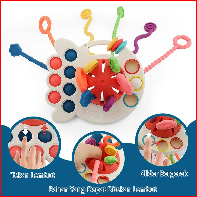 Mayy Id Mainan Edukasi Bayi Bpa Free Multifungsi Pop It Teether Bayi Tarik Panjang Mainan Gigitan Bahan Silikon Bentuk G
