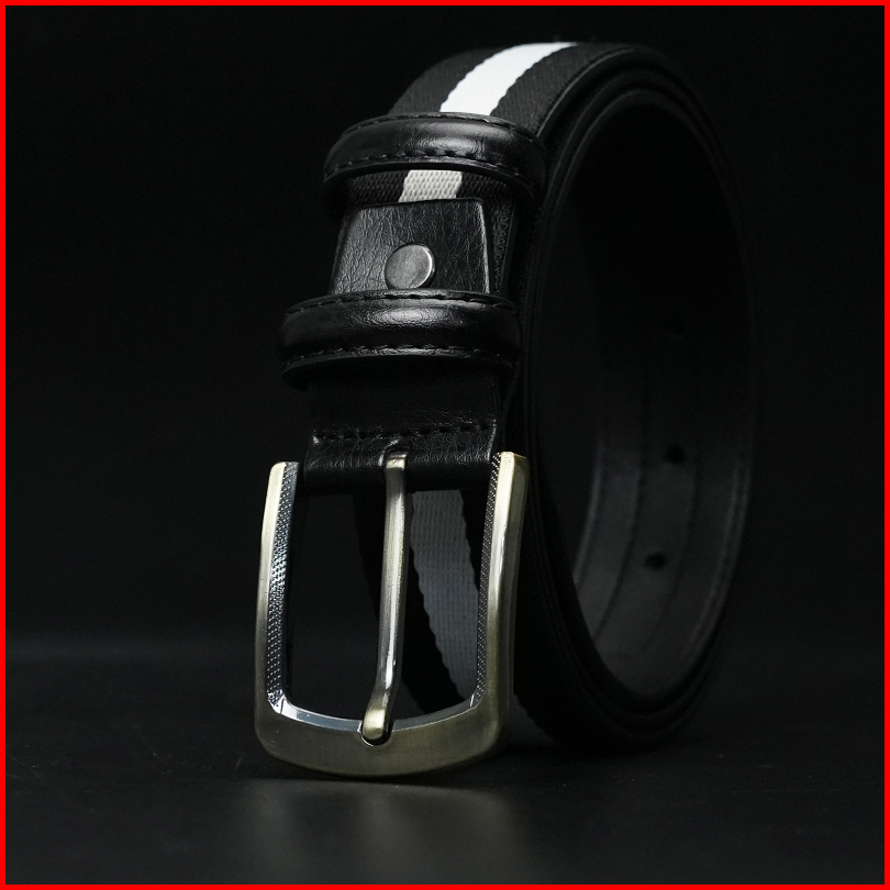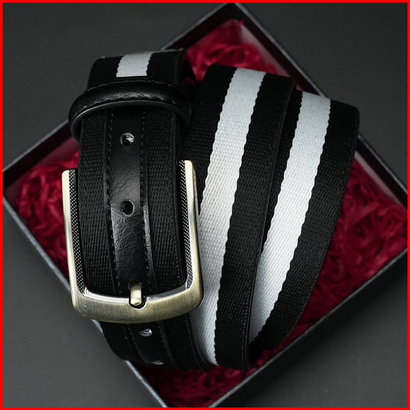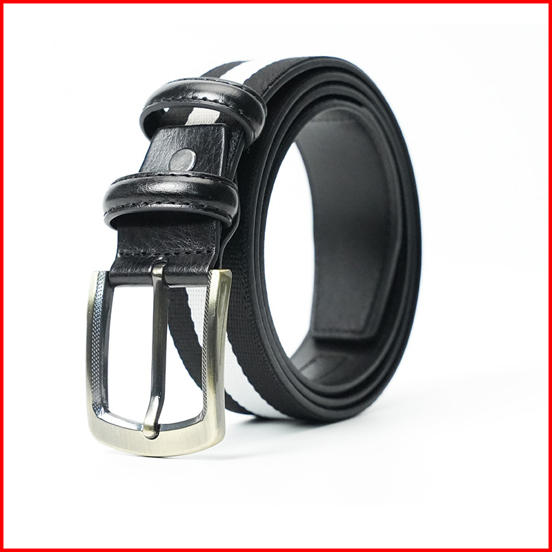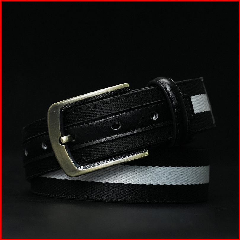 Bgs-302 Gesper Model Tusuk Ikat Pinggang Pria Panel Kanvas Dan Kulit Lapis Kedua Sabuk Pria