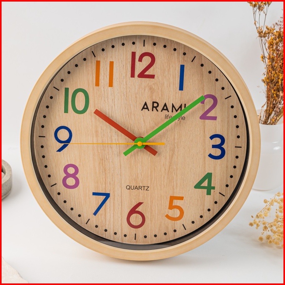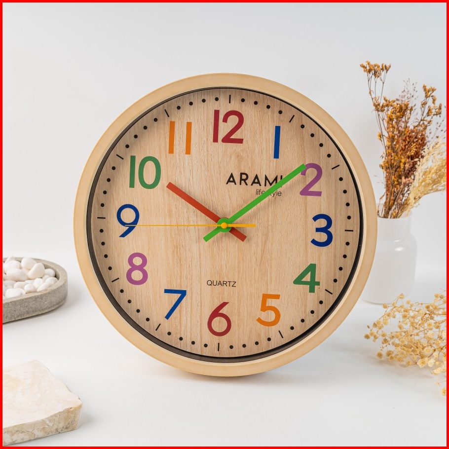 Arami Wall Clock Colorful Wood Design Jam Dinding Besar Model Kayu