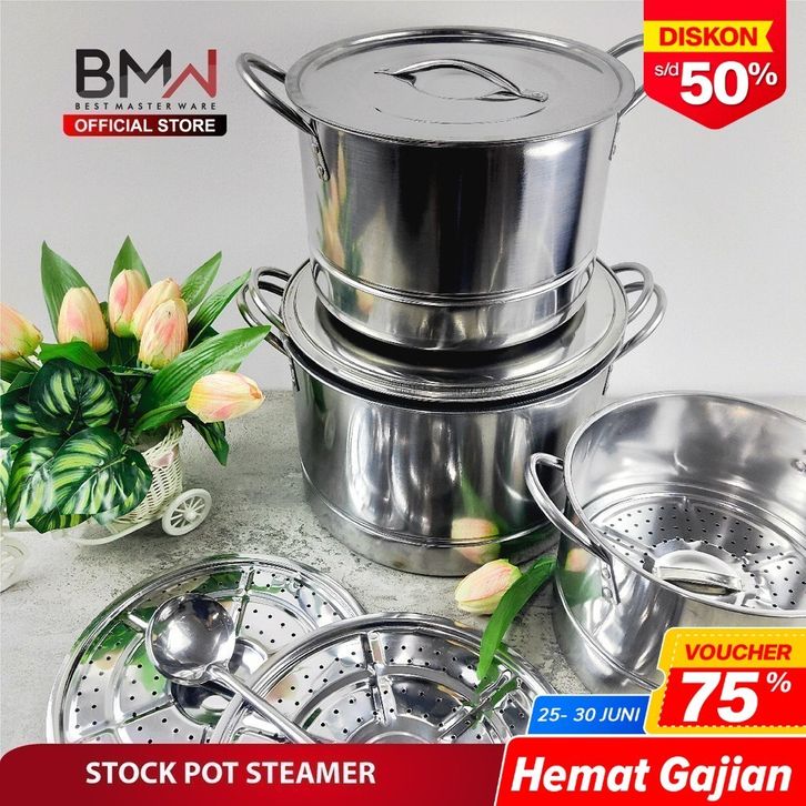 Panci Kukus Set Stainless Steel BMW Kitchen Ware Dandang Stock Pot Steamer Panci Bumbu STH 03