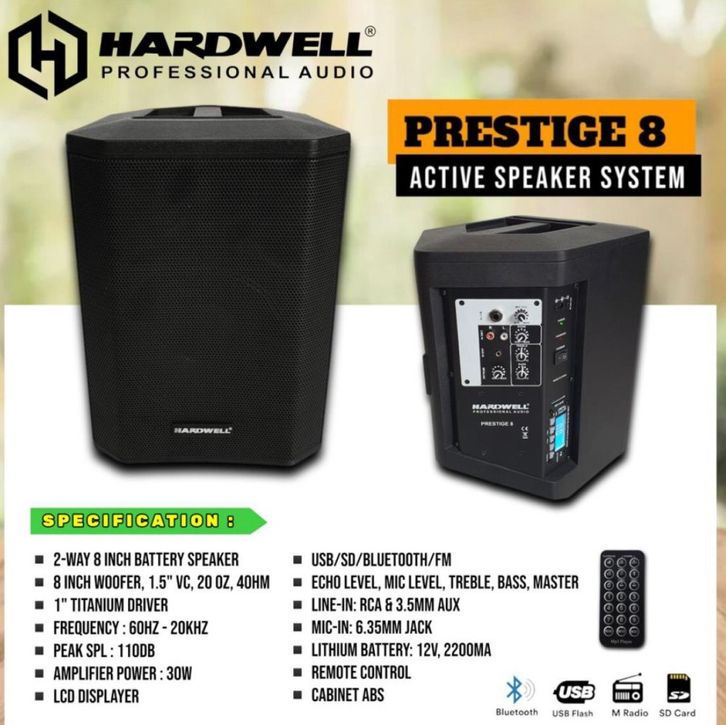 SPEAKER AKTIF HARDWELL PRESTIGE 8 ORIGINAL 8 INCH BLUETOOTH USB SD FM GARANSI