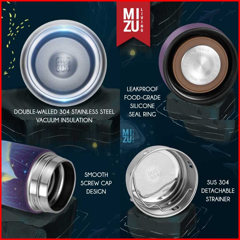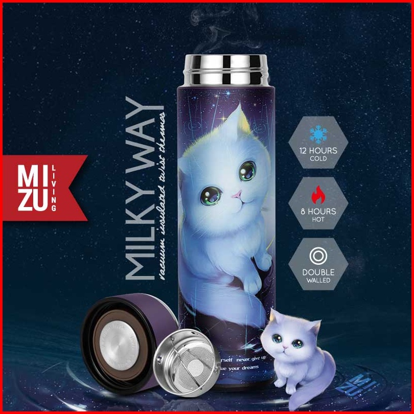 Mizu Milky Way Vacuum Insulated Twist Thermos Stainless 304 Flask Strainer Termos Stenlis Bpa-free Tumbler Saringan Teh