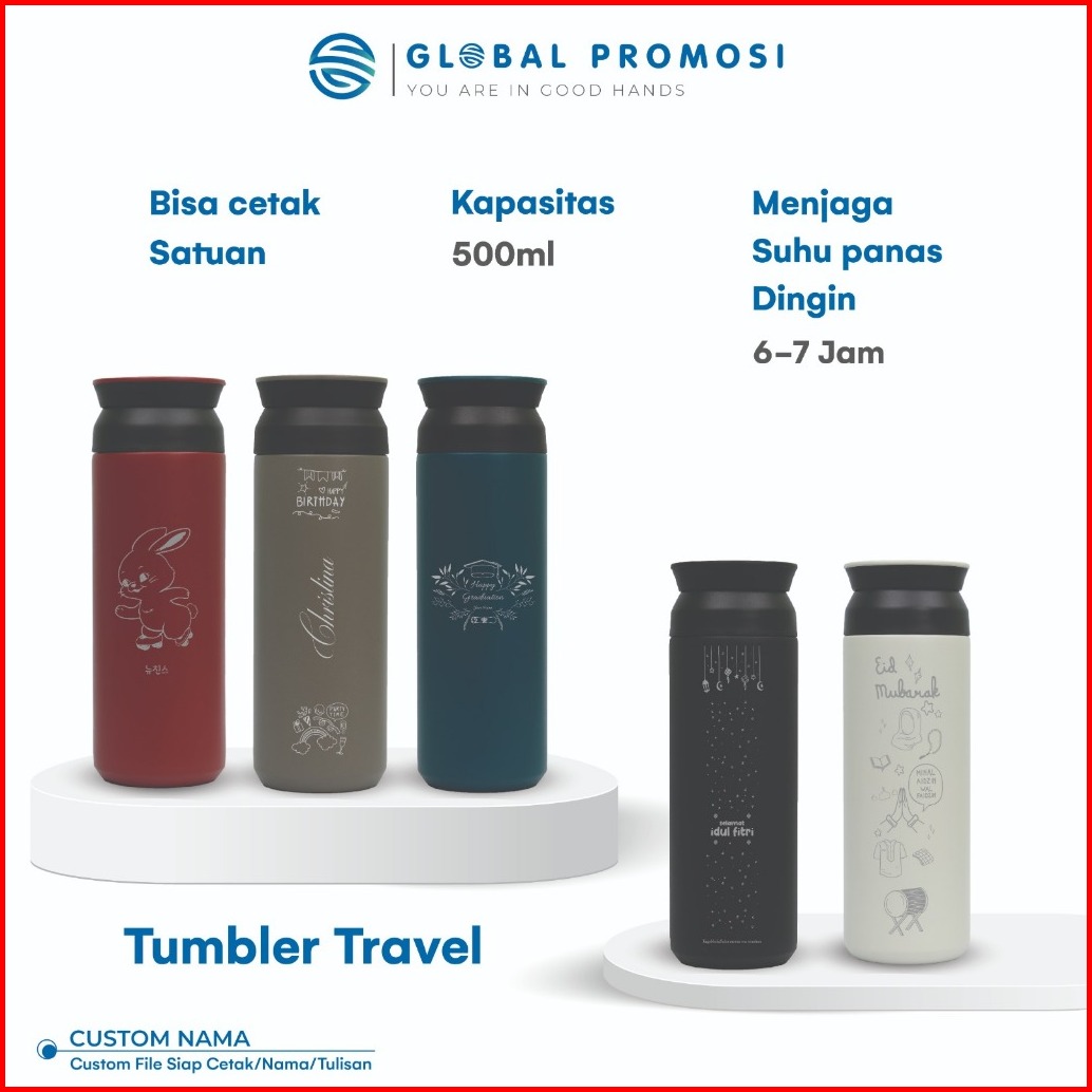 Tumbler Travel 500ml Premium Stainless Stell Custom Cetak Nama Logo Souvenir Laser Grafir