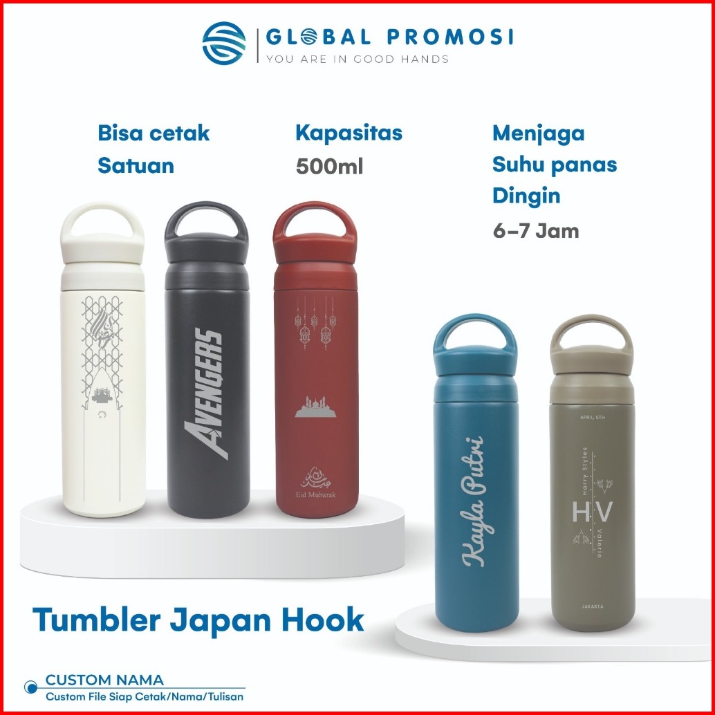Tumbler Custom Japan Hook 500ml Stainless Steel Laser Grafir Nama Logo Desain Souvenir