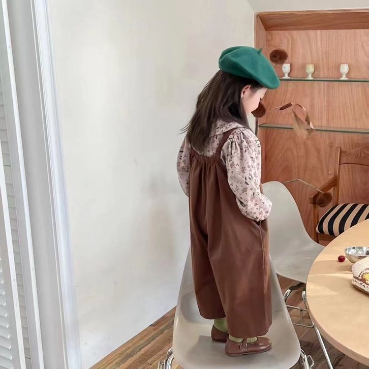 PROMO Style Terbaru Setelan Anak Perempuan Kemeja Motif Bunga+Celana Panjang Overall Setelan Mains Anak Perempuan