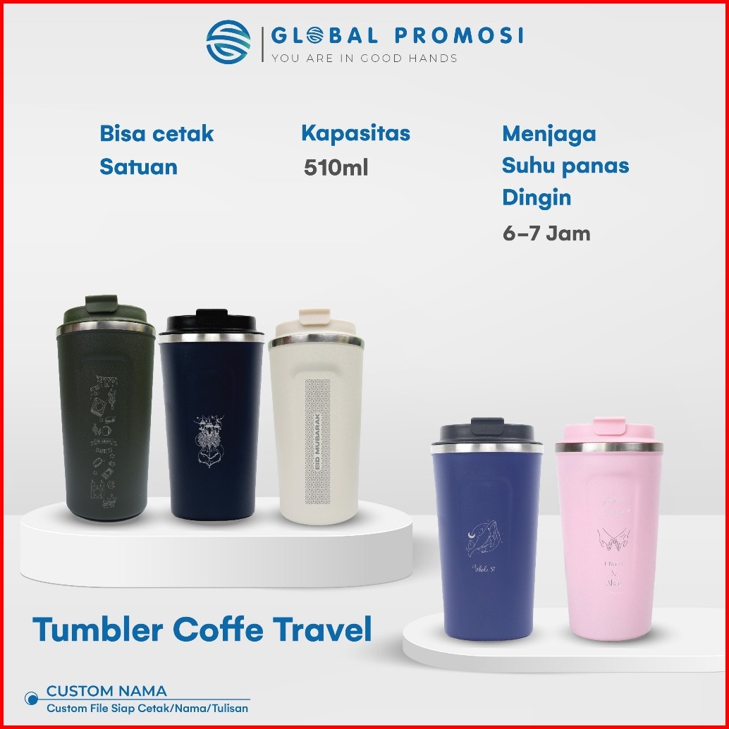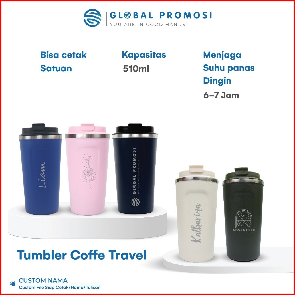 Tumbler Coffee Travel Mug Custom Gelas Minum Stainless 510ml Cetak Nama Logo Laser Grafir