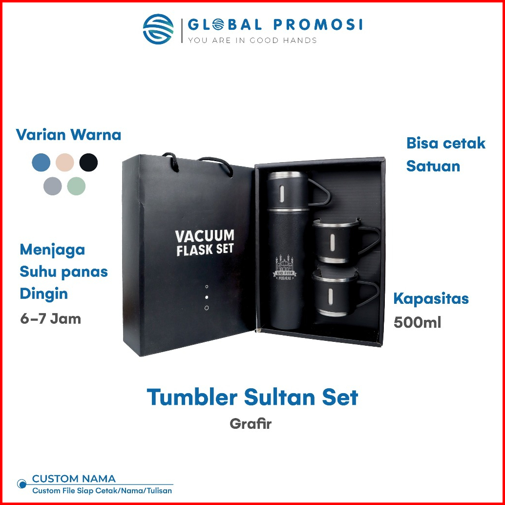 Custom Termos Sultan Set Paket Hampers Tumbler Stainless Cetak Nama Logo Desain Laser Grafir