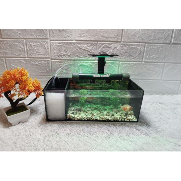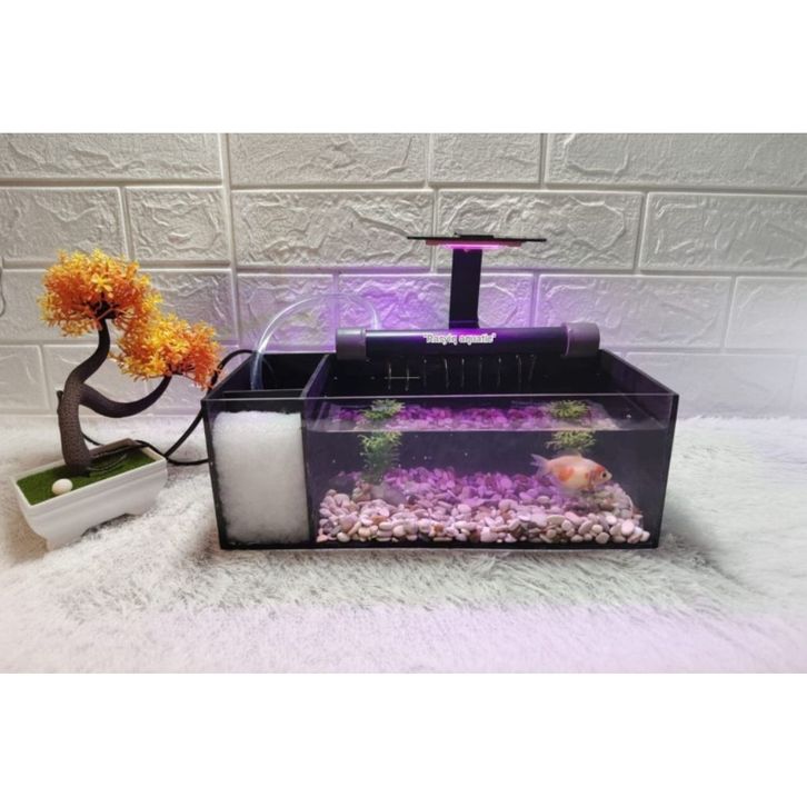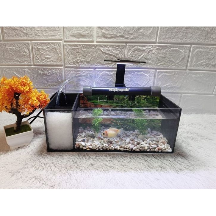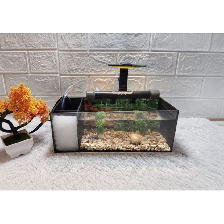 Aquarium Kotak Mini Akrilik PVC Fullset Dengan Mesin Filter Dan Lampu Led Plus Air Mancur Untuk Ikan Hias/Ikan Cupang