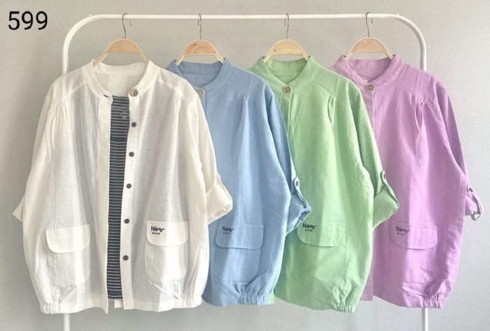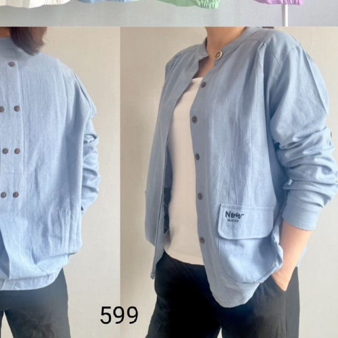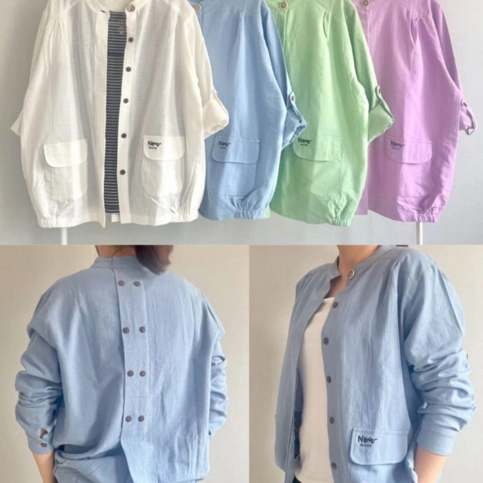 ATASAN WANITA DEWASA IMPORT, KEMEJA LENGAN PANJANG, POLOS KATUN IMPORT - PUTIH