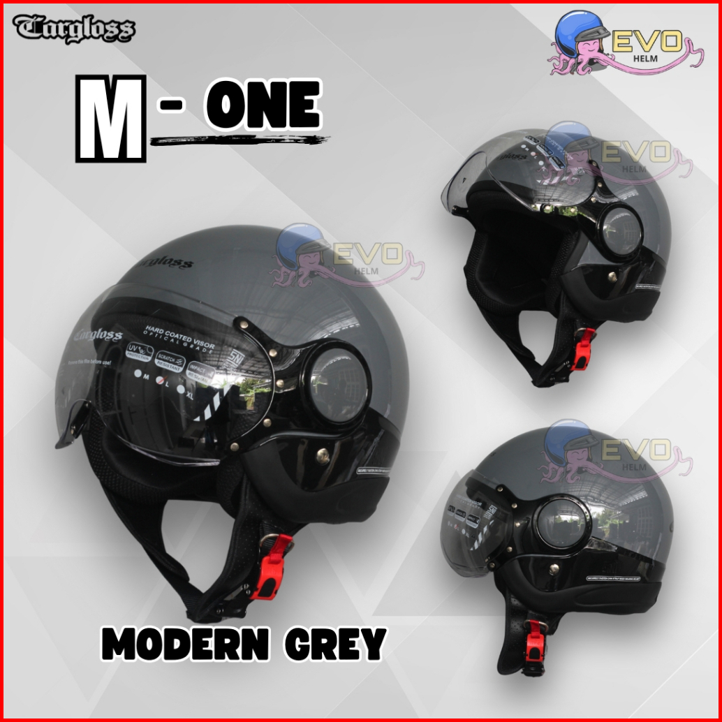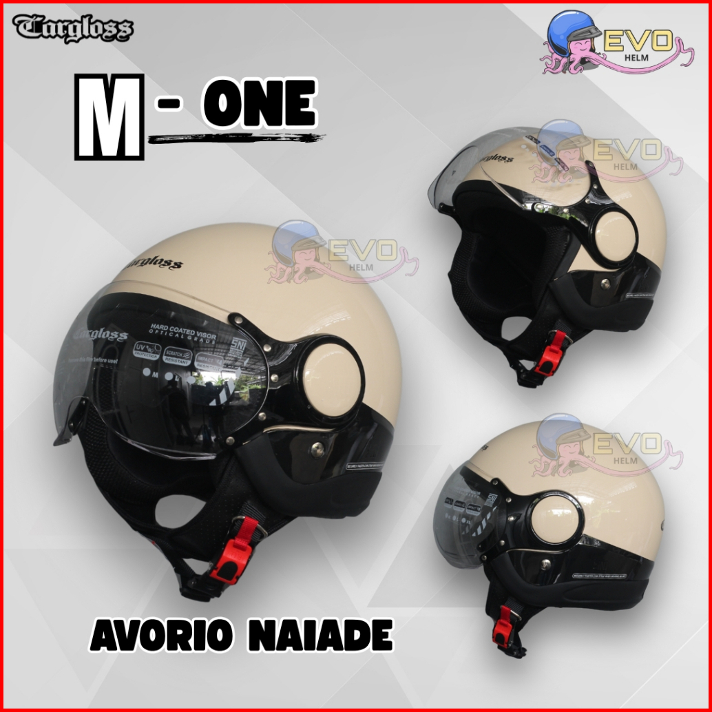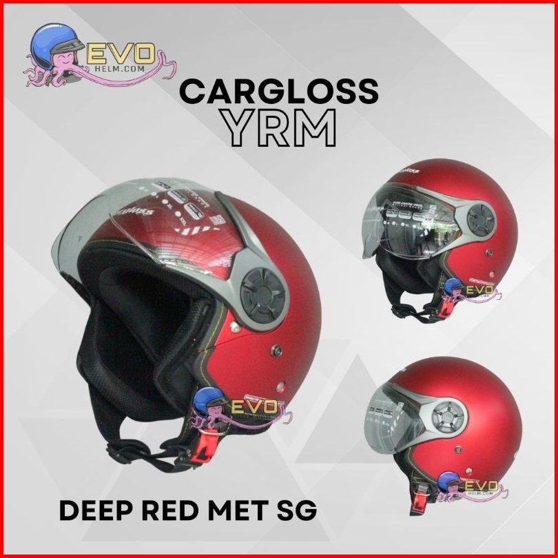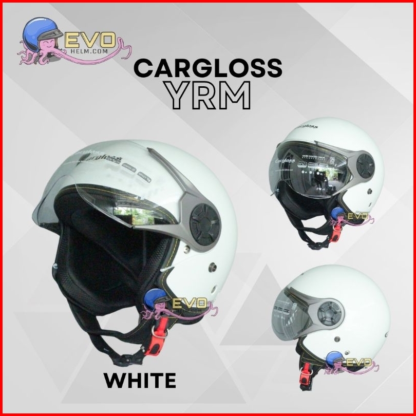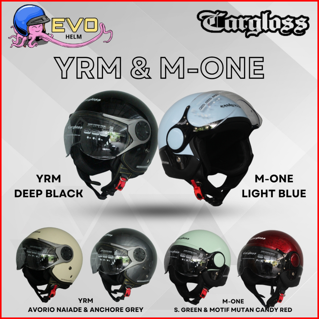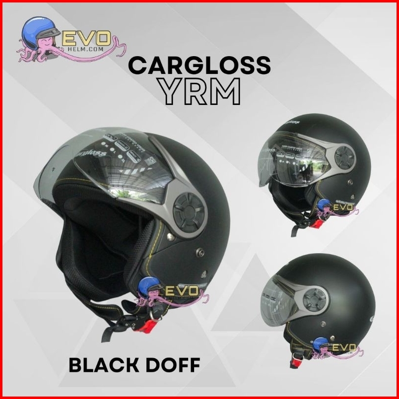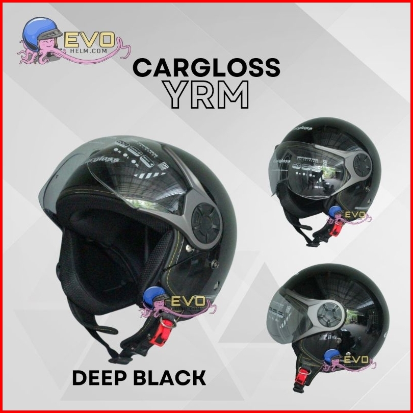 Cargloss Yrm Helm Half Face - Deep Black Glossy Pria Wanita Original Cargloss Yrm M-one Solid