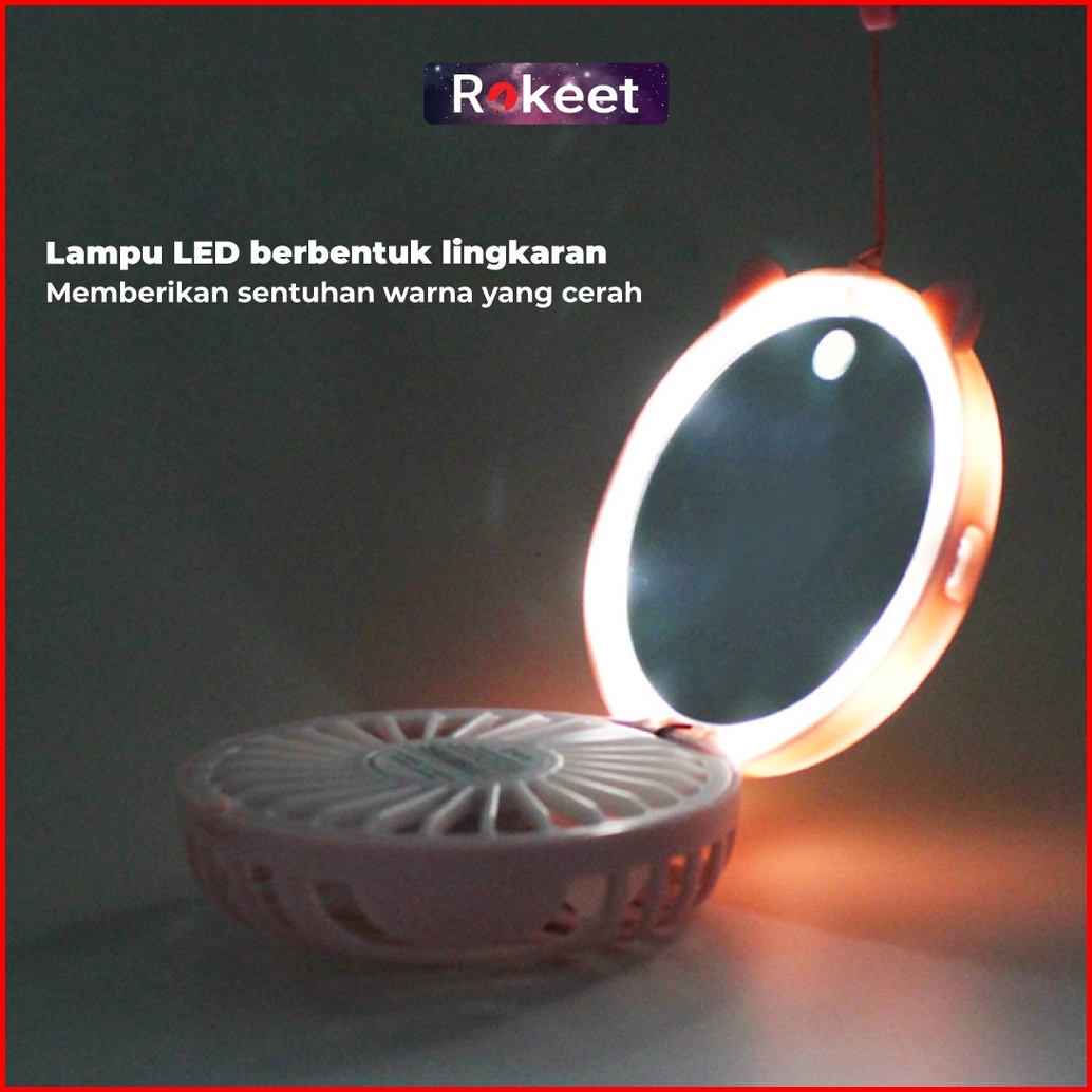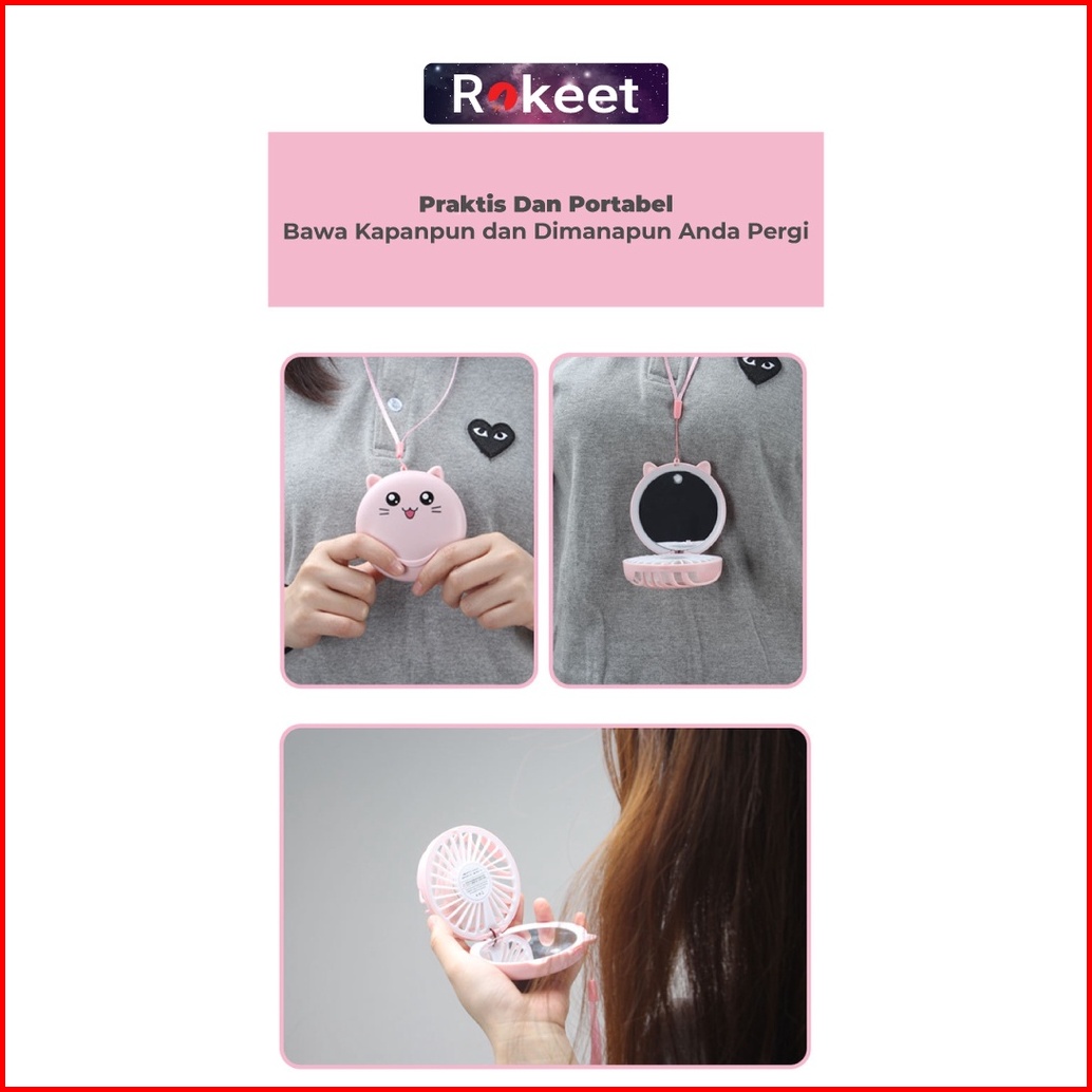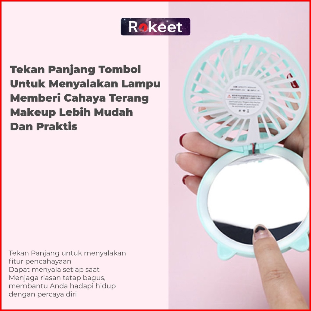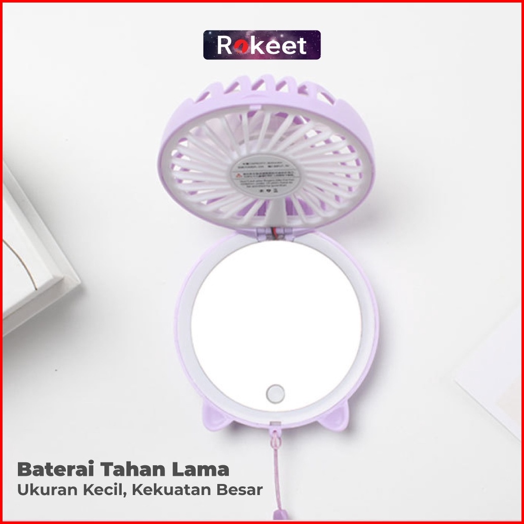 Rokeet Kipas Angin Cermin Kaca Led Portable Karaker Mini Fan Mirror