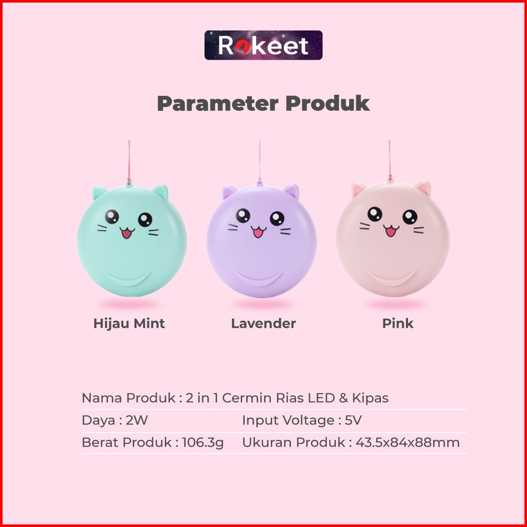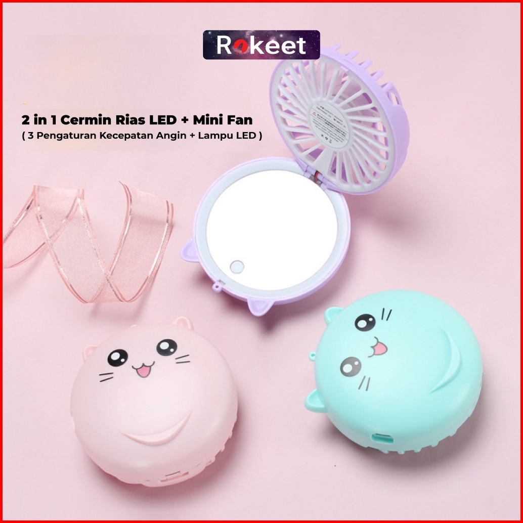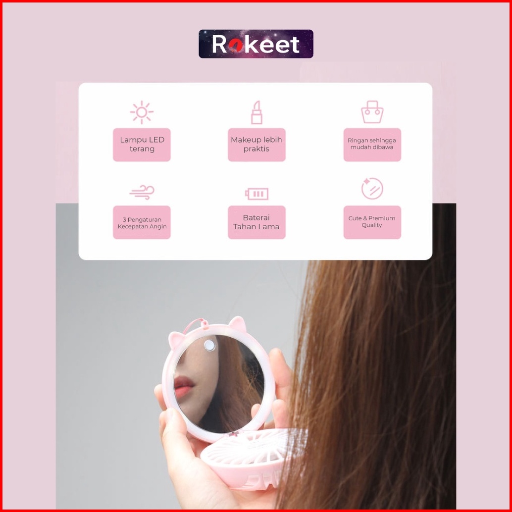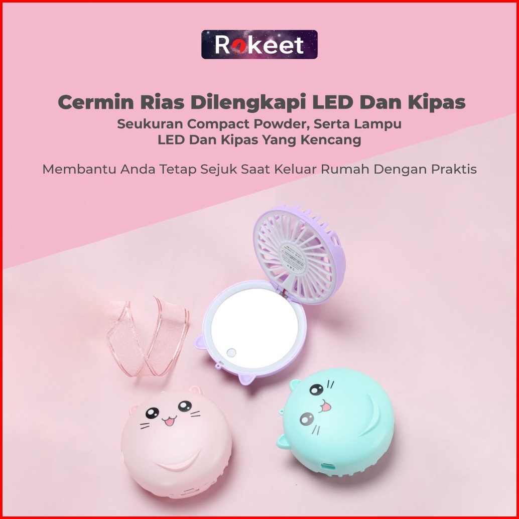Rokeet Kipas Angin Cermin Kaca Led Portable Karaker Mini Fan Mirror